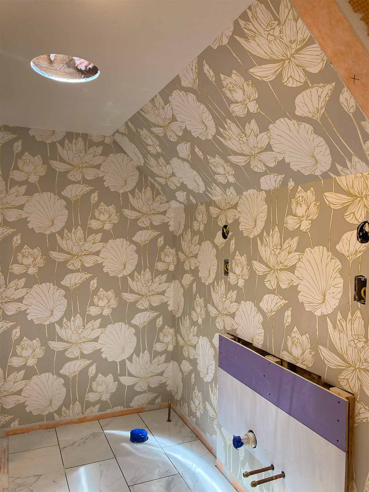 - And to protect the wallpaper from fading and mildew/mold, we put a decorators varnish on the wallpaper.