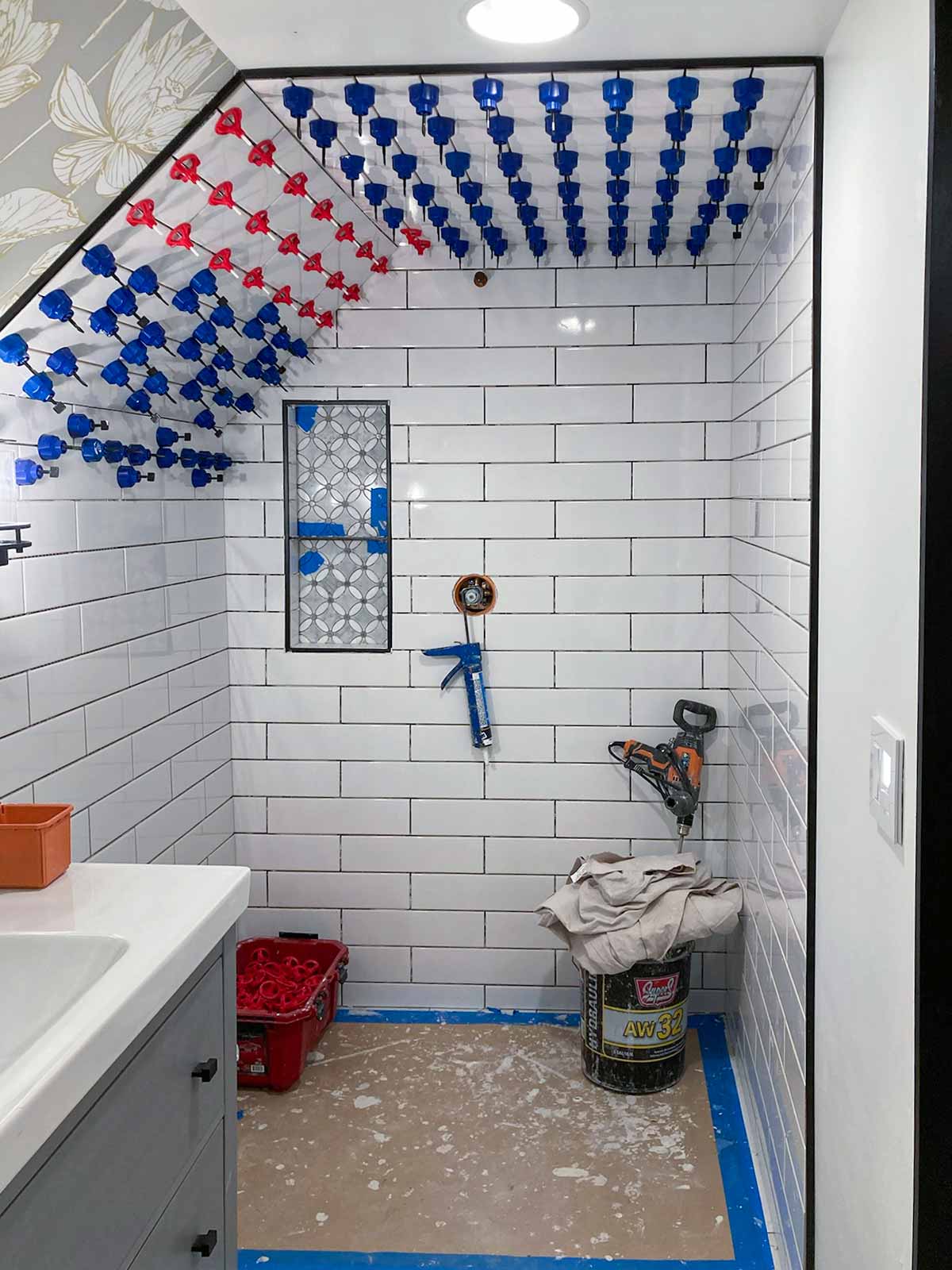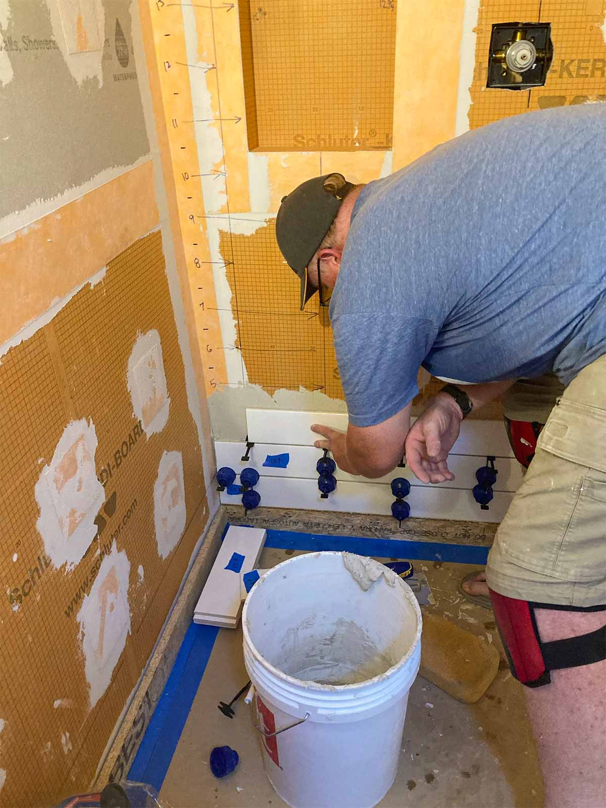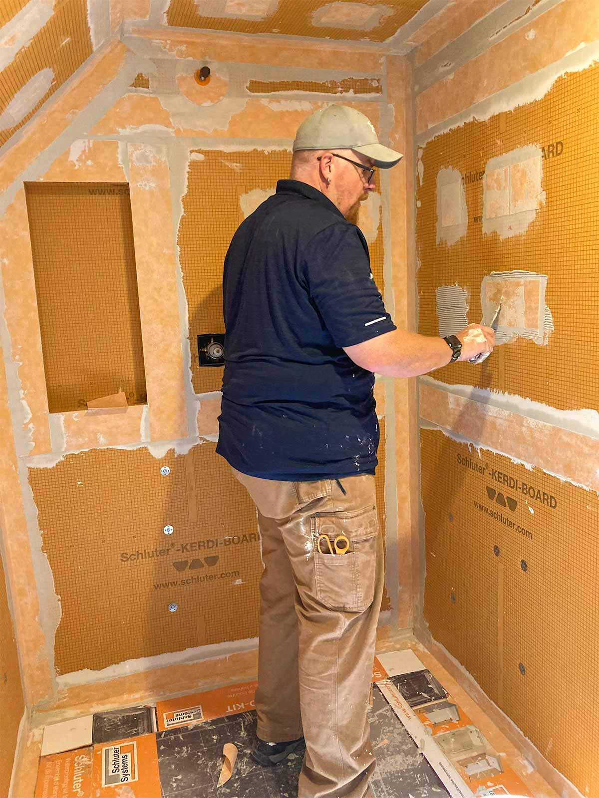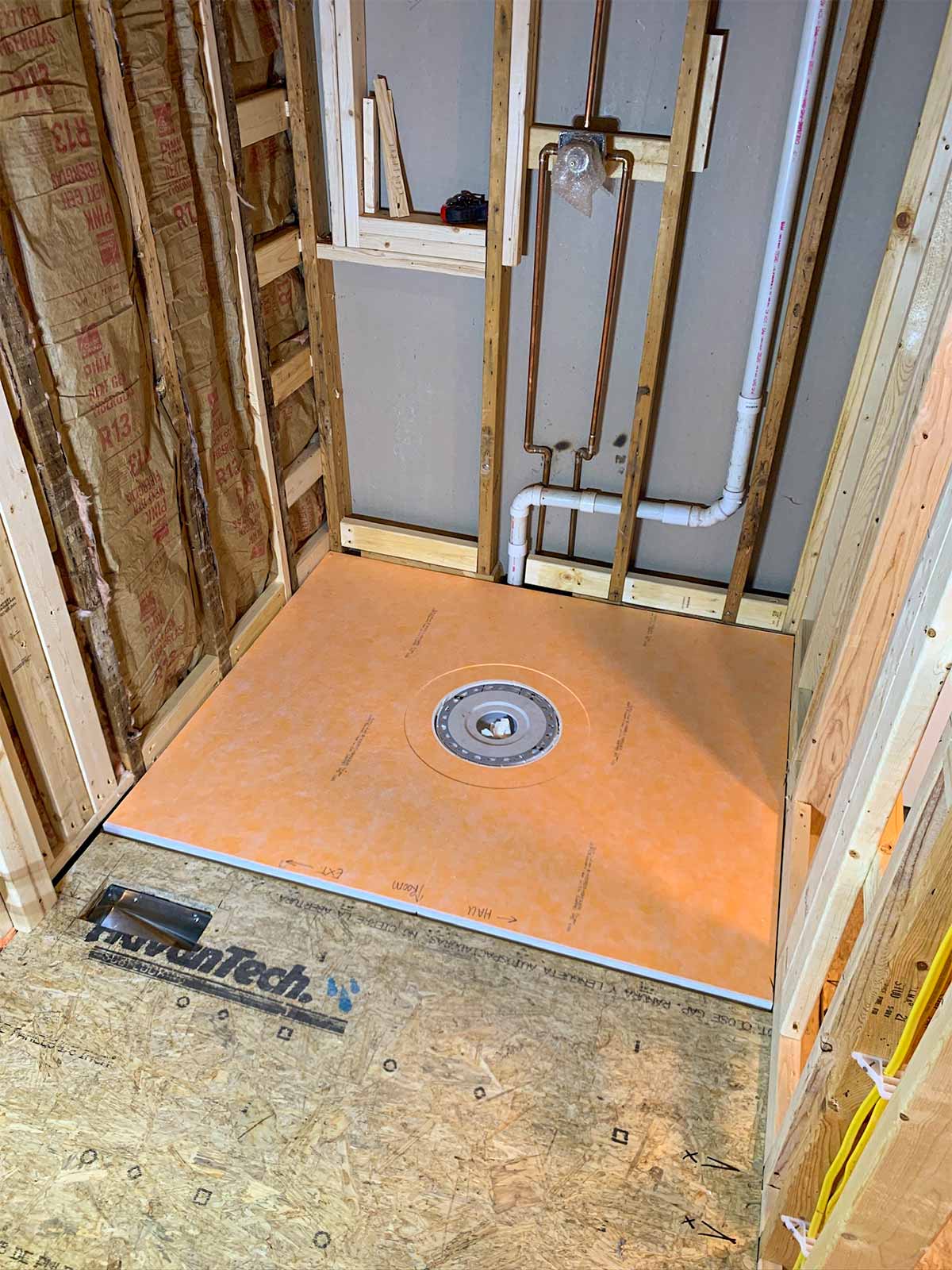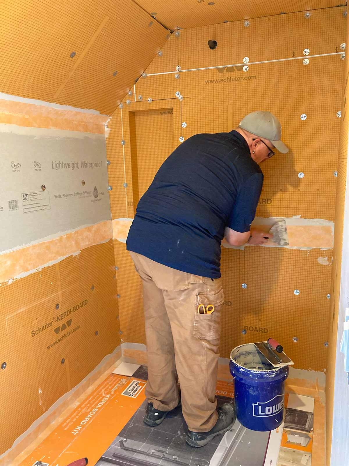 Anyone who has installed a new bathroom in the past two decades or so probably has used the Schluter waterproofing products. This was our first experience, but we've seen it done on YouTube many times. Thanks to David Blumke at MI North Flooring in Alanson for filling in the gaps in the materials we had previously purchased.