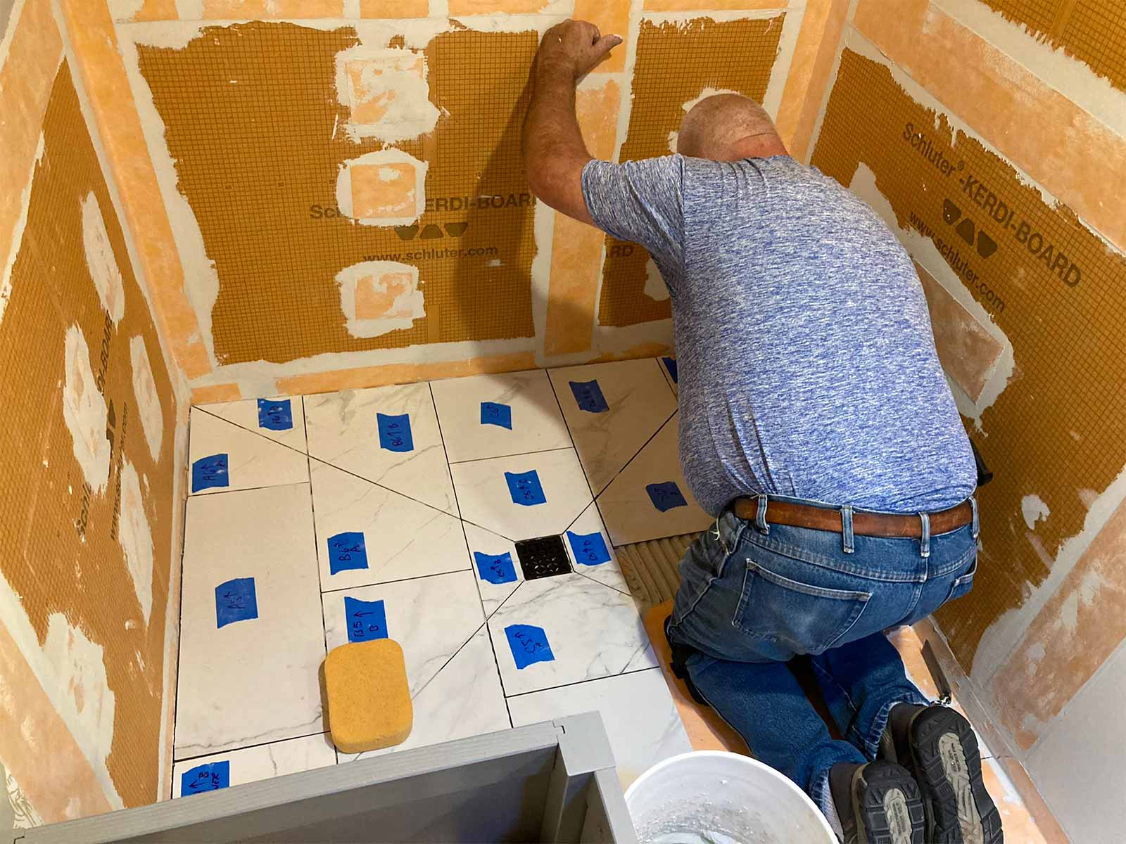 Andy gladly took some help from our neighbor, Bob Goode, who is a retired expert tiler. Thanks Bob!