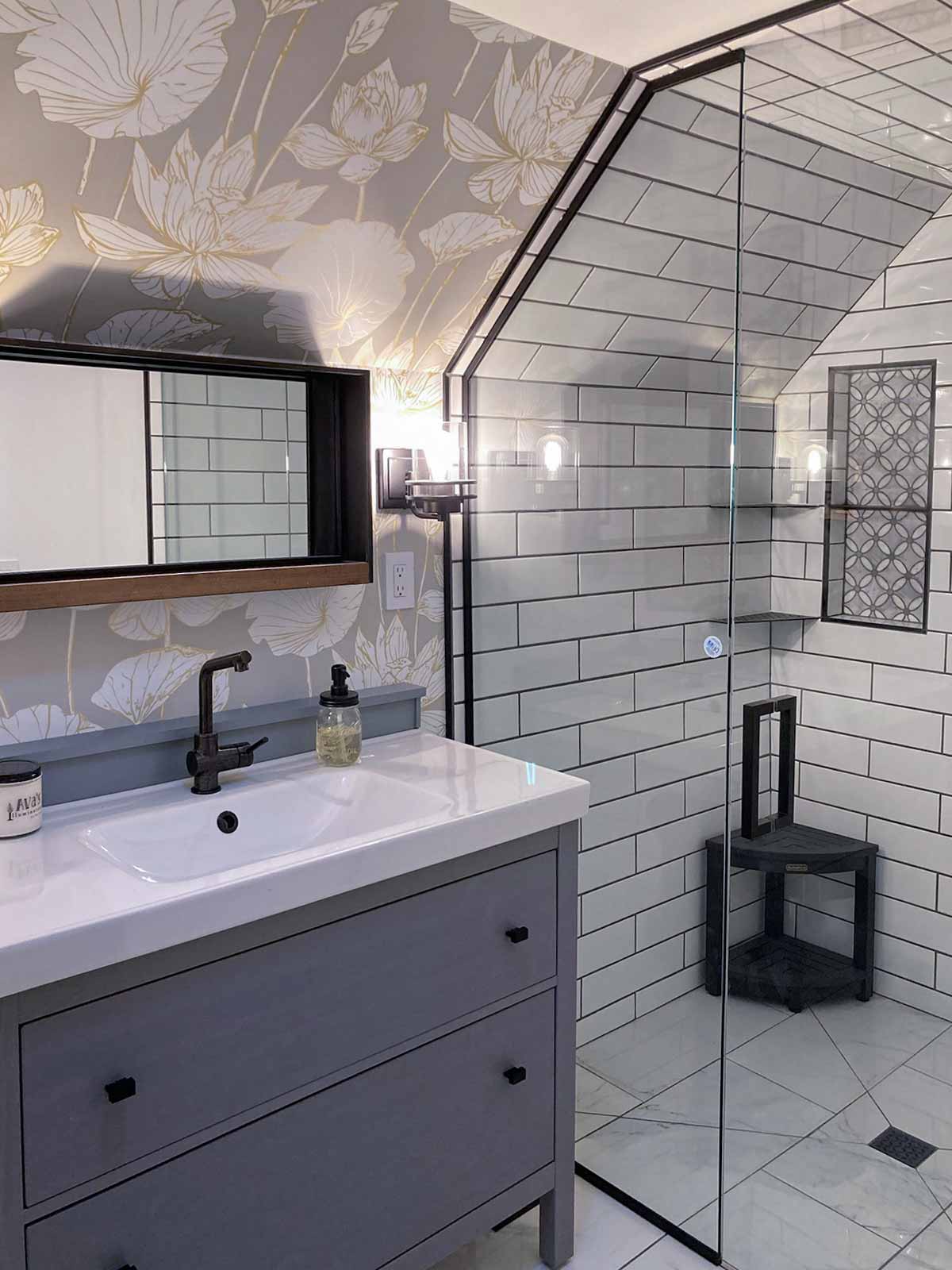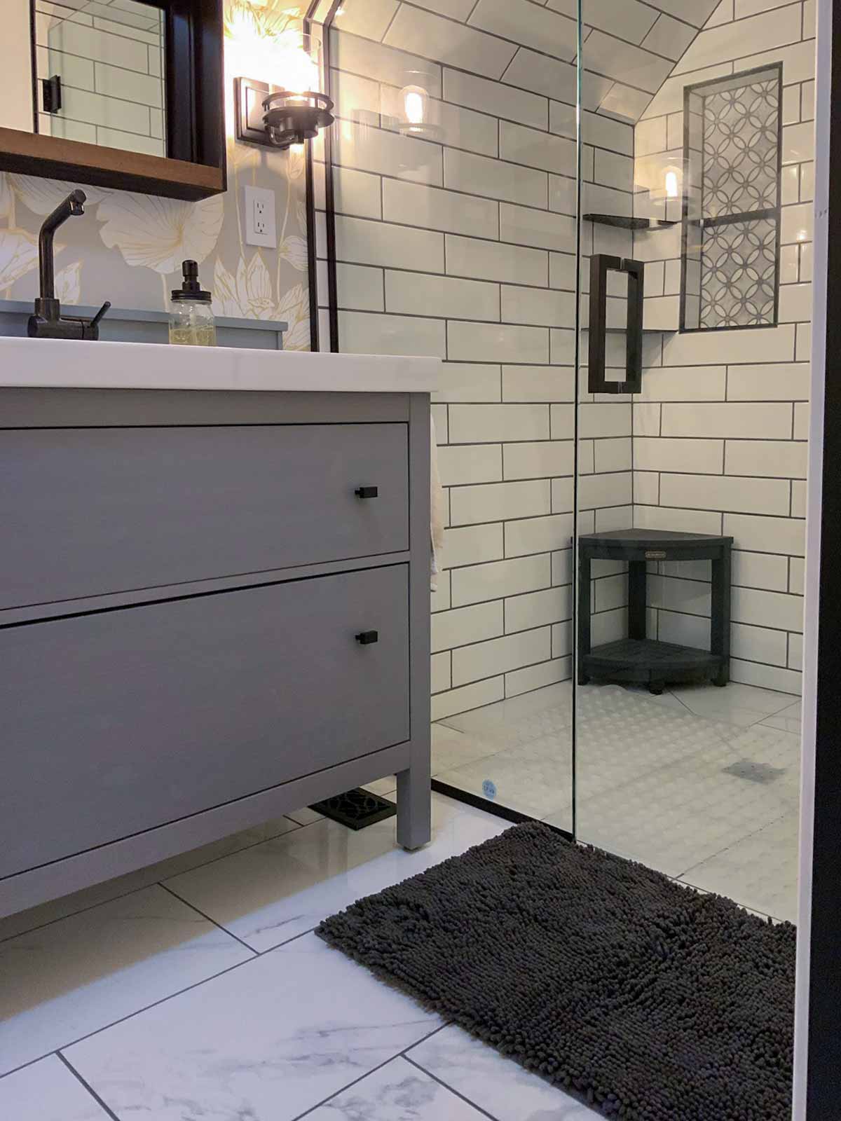 - Corner bench in shower is from Amazon: KaimuBench in black.