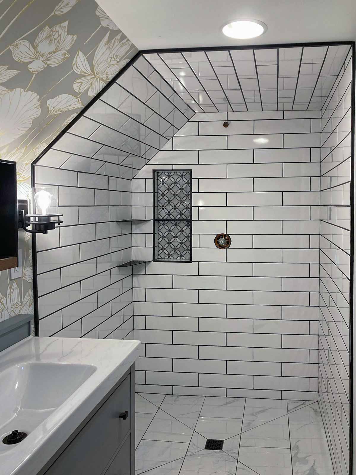 - Shower tile: Daltile large format subway tile purchased from The Home Depot