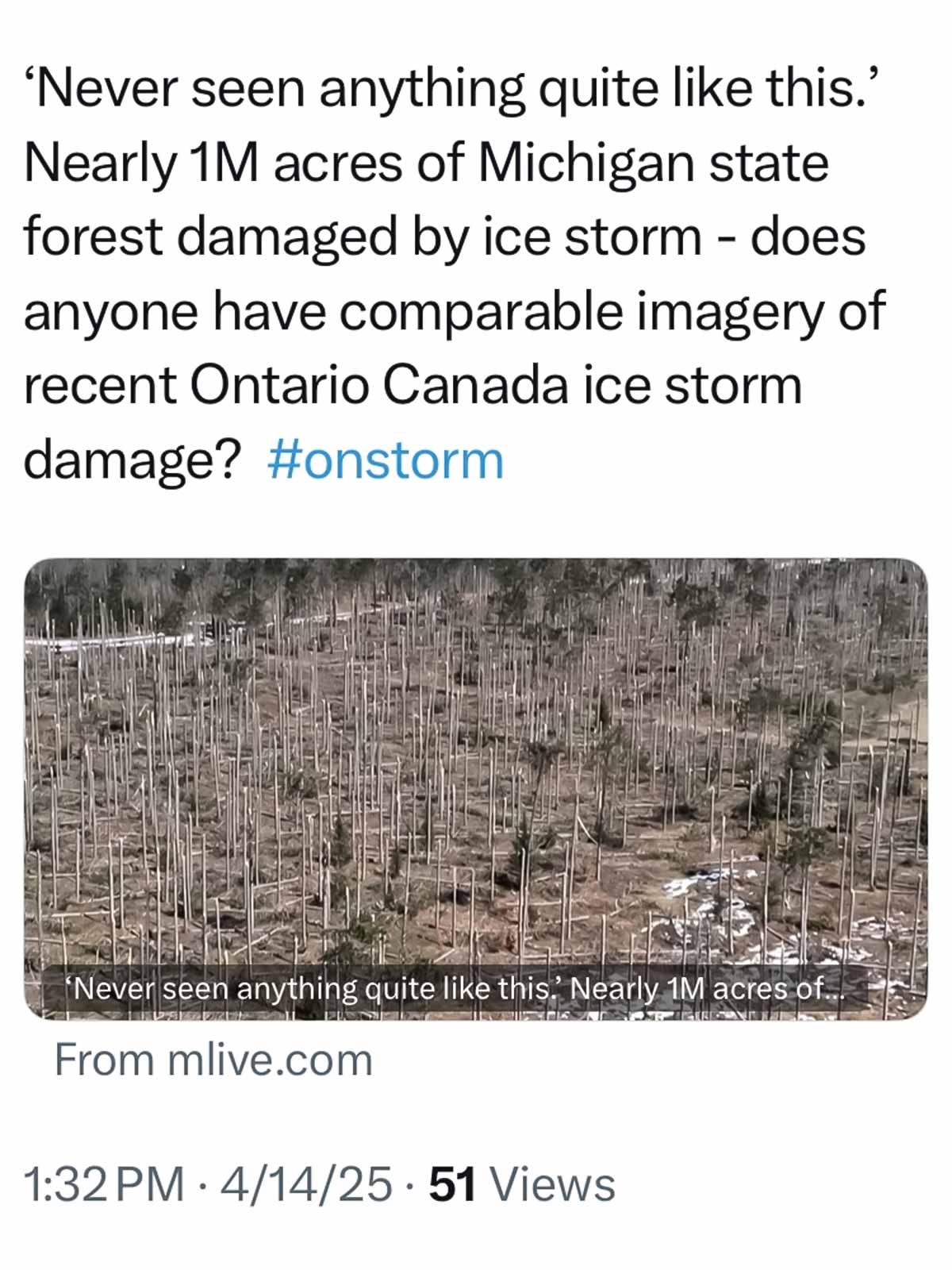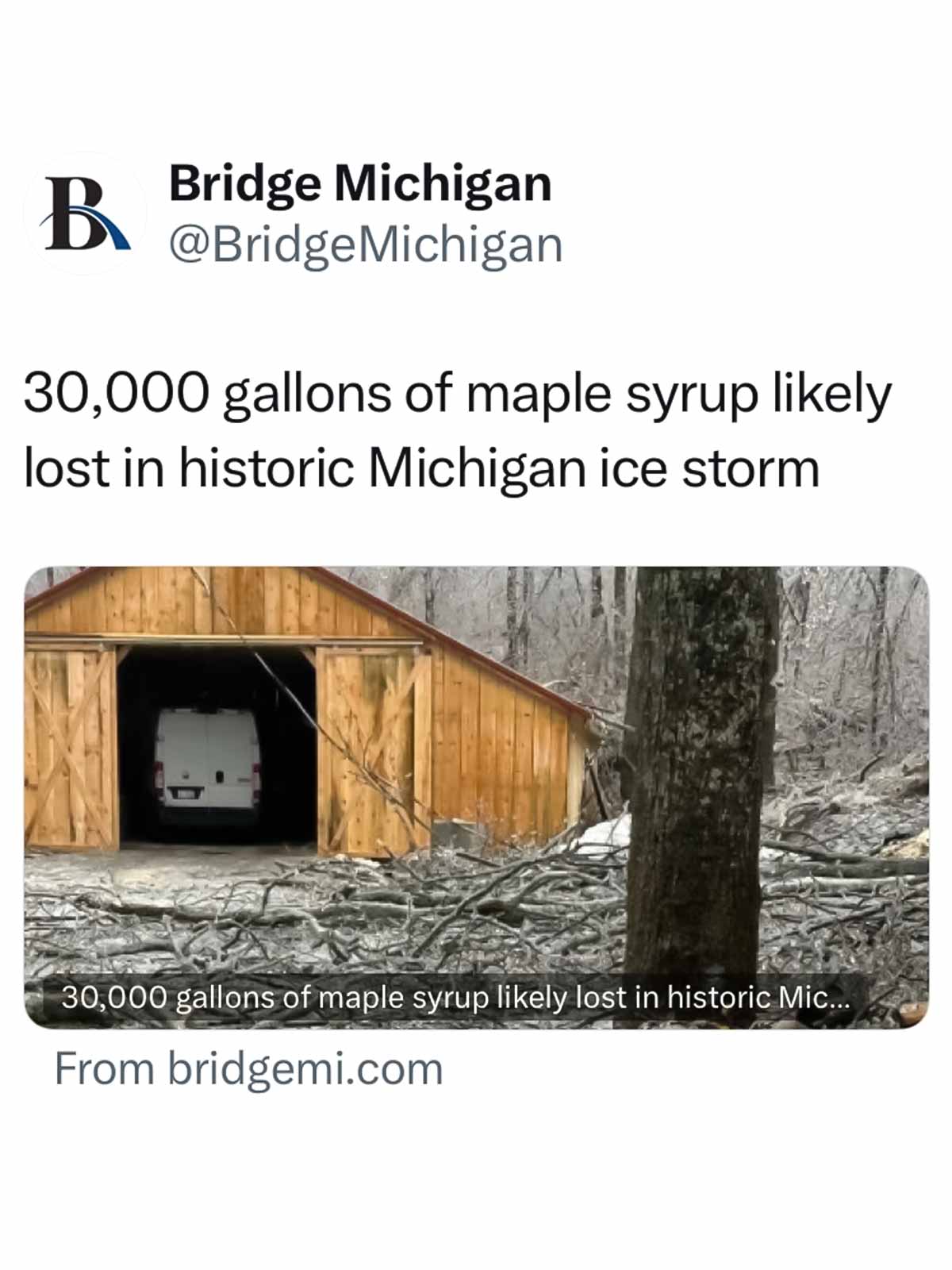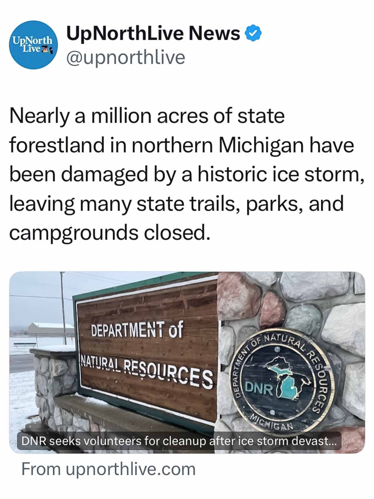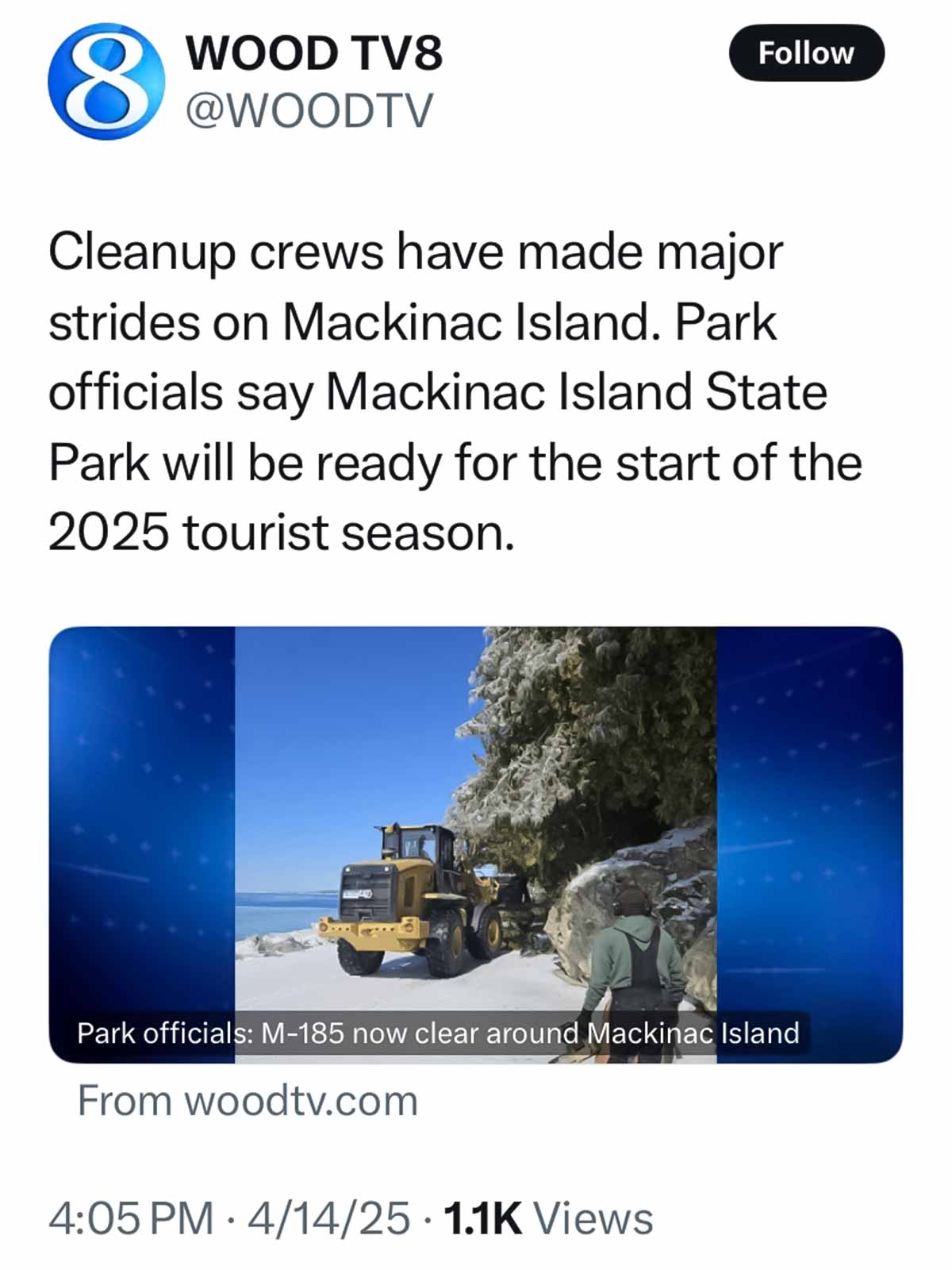 Most of Mackinac Island, which is 80% State Park, is inaccessible. There is much work to be done for this popular tourist destination to reopen for the busy season. Yellow roads are clear, red are not. Other State Parks will be closed for possibly months as well. Another hard hit industry is the maple syrup farms. There is a large farm located one street over from us.