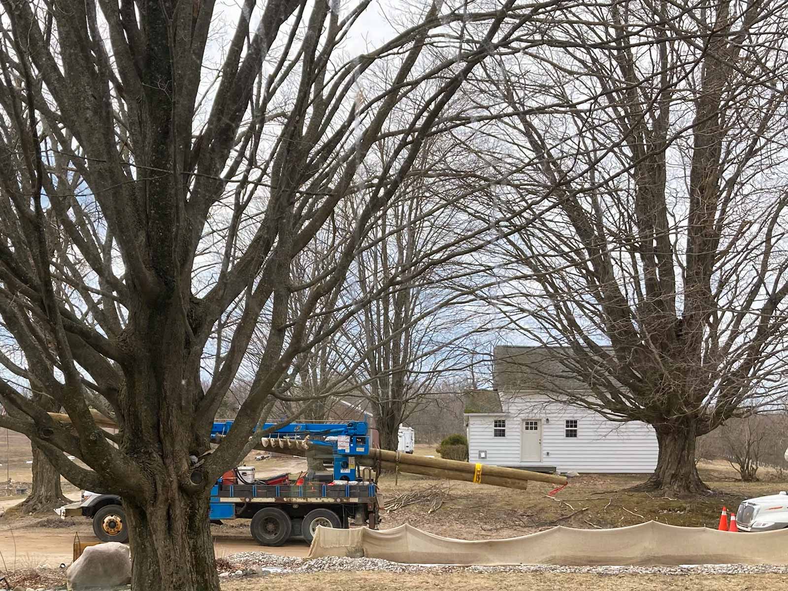 Day 12– It was quiet here until around 2 PM. Then gradually trucks began arriving on our street. Then a boatload of trucks with poles arrived around 3 PM! I counted eleven trucks!!!