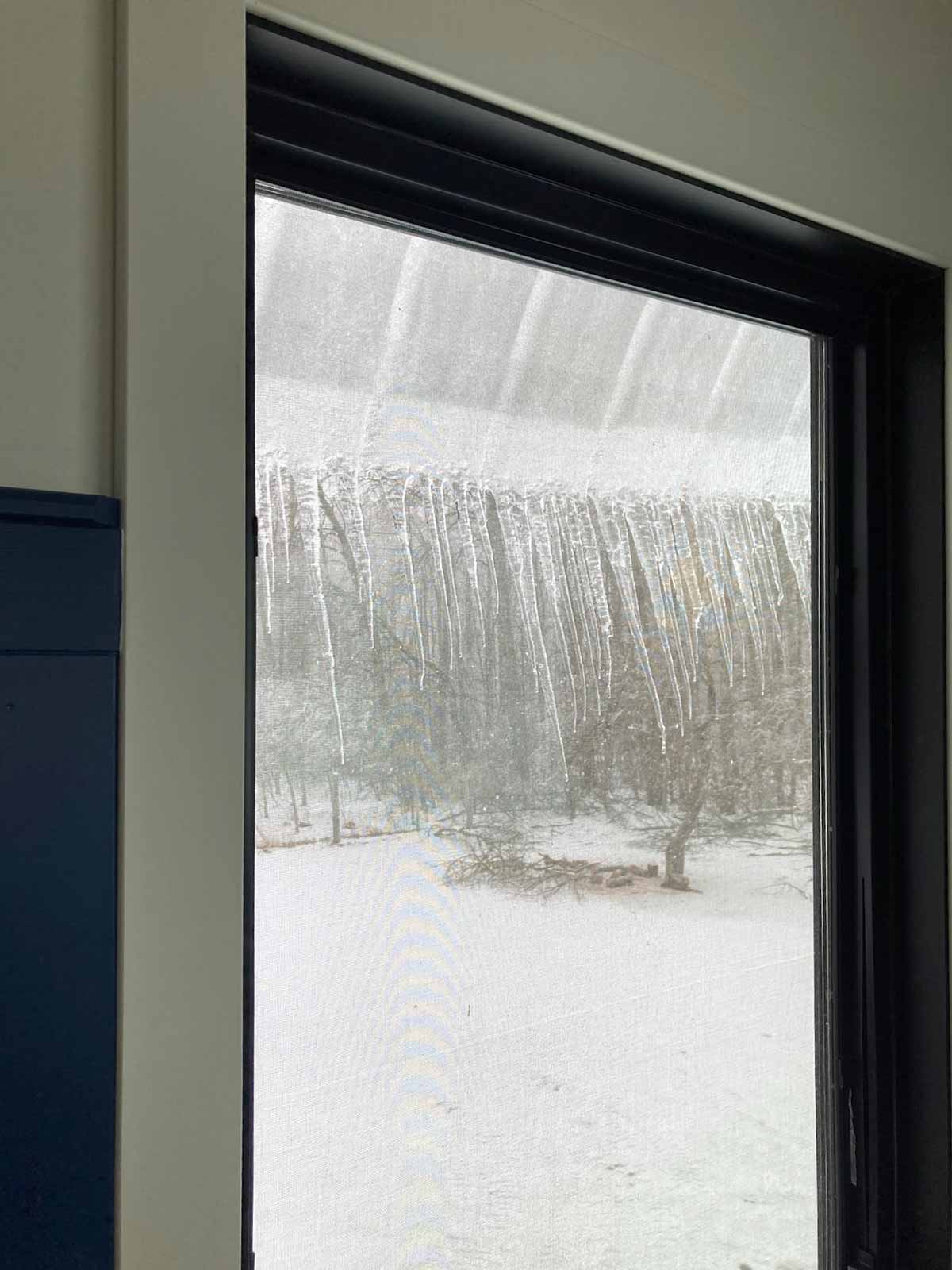 Thursday, April 3 we awakened to trees that had no remaining ice, and they began to lift back into place, after 5 days of ice! Unfortunately, that warmup brought gusting winds up to 40 mph.