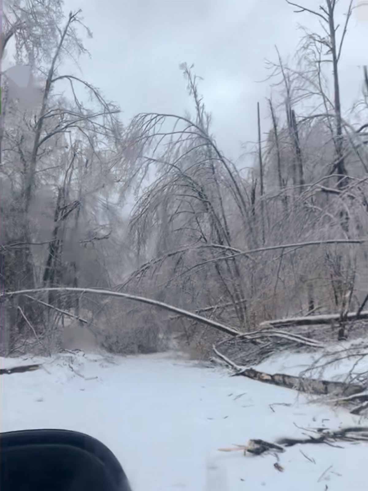 By Tuesday, we had one way out from our house, but the trees were still weighed down with ice and continued to break. By the end of the day on Tuesday, four utility poles in a row were down on our street. And we heard it was like that all over northern Michigan.