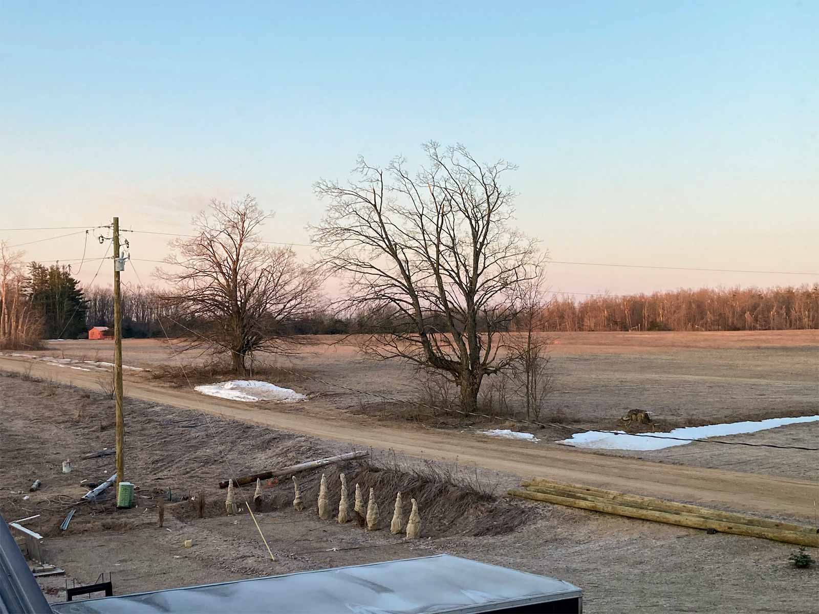 I had a knock at the door from one of the workers. He was from Canada, about 4 1/2 hours from here. He says he knows this area well from snowmobiling in the winter and dirt bikes in the summer on our trail system. He said they've been driving the work trucks up and down the trails and he's gotten to know the trail system even better now. He said this is the closest he's been to home in a month. He was in Indiana before this. They just finished the lake side of Resort Road. He said they replaced ONE HUNDRED POLES on the lake side. They all had snapped! He said his supervisor would decide if our hookup was sound for them to connect our service wires to our house. If all goes well, we may have power within a day! We'll see…