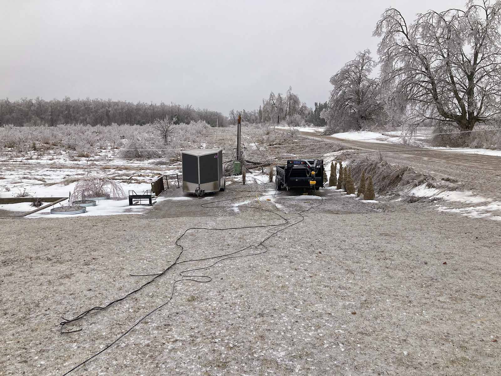 Day 11– Winter is back again- snow showers all day. At least the generator is still kicking! Our power company is Great Lakes Energy. On Day 11, looking at the outage in our area, it shows 72% of their customers in our county are still without power. No sign of anyone from the power company today.