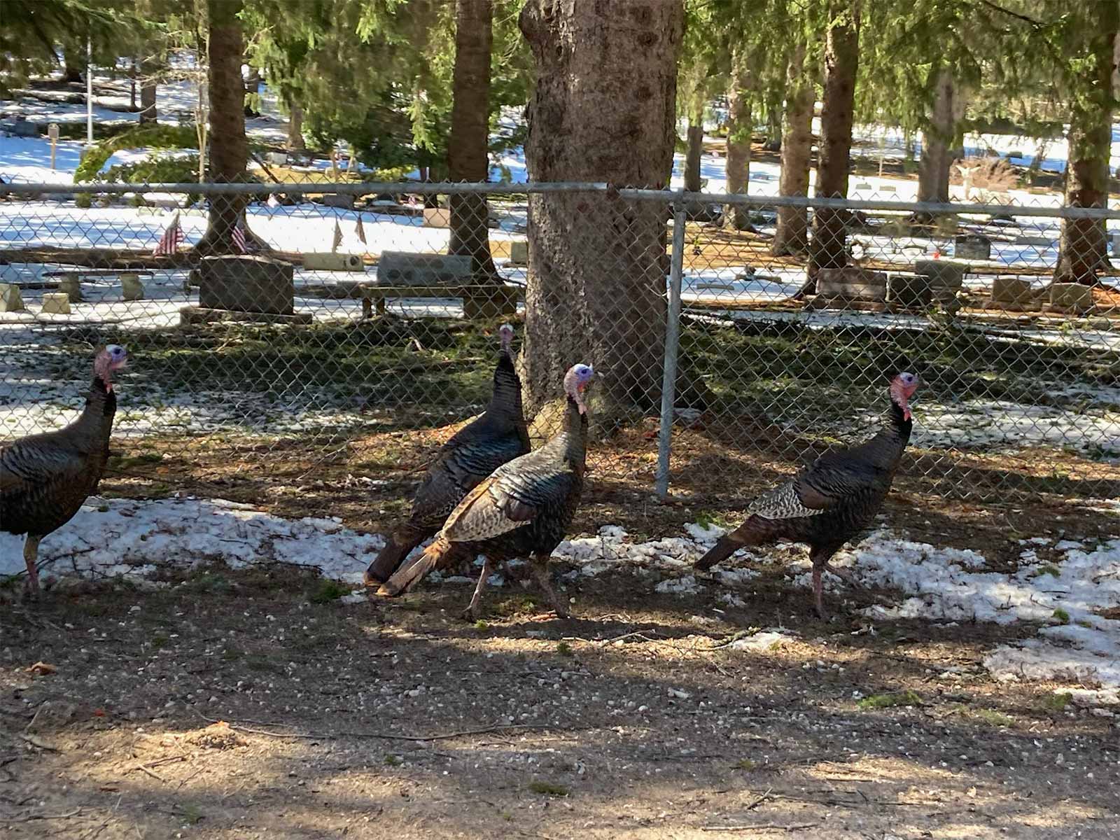 Wednesday, April 2, we had more snow with freezing rain, then rain again. The trees were still weighed down with ice from the first storm, and now more ice! Many areas that had power restored already, lost power again due to this round of weather. Overnight, we heard many sounds of ice falling from the roof and trees.