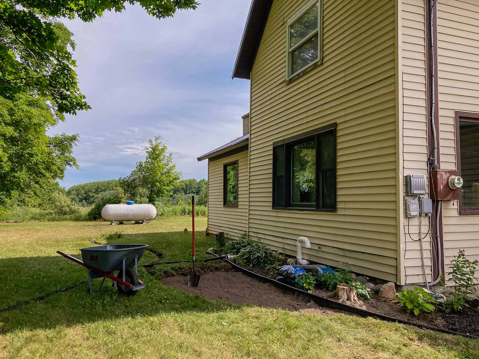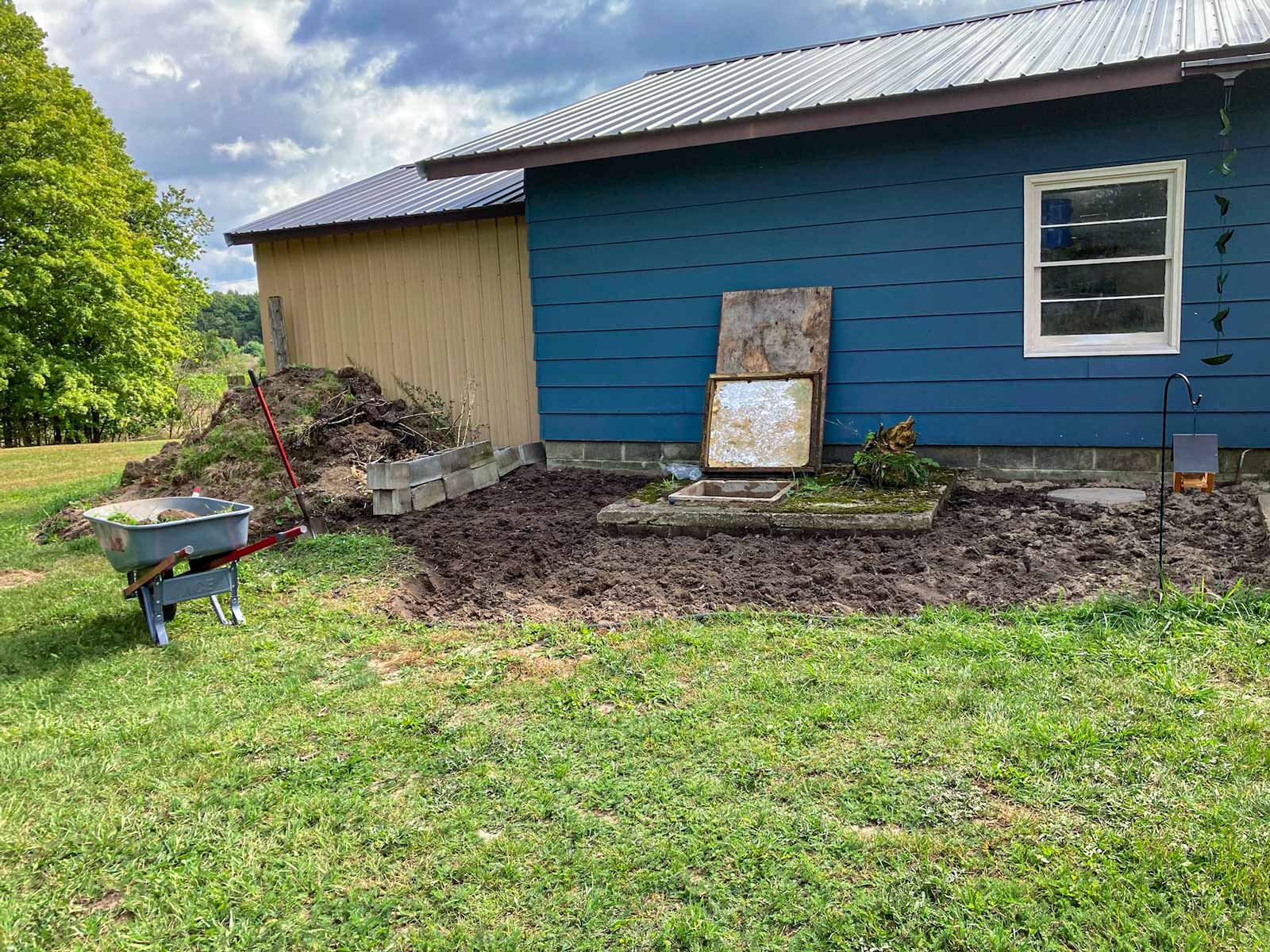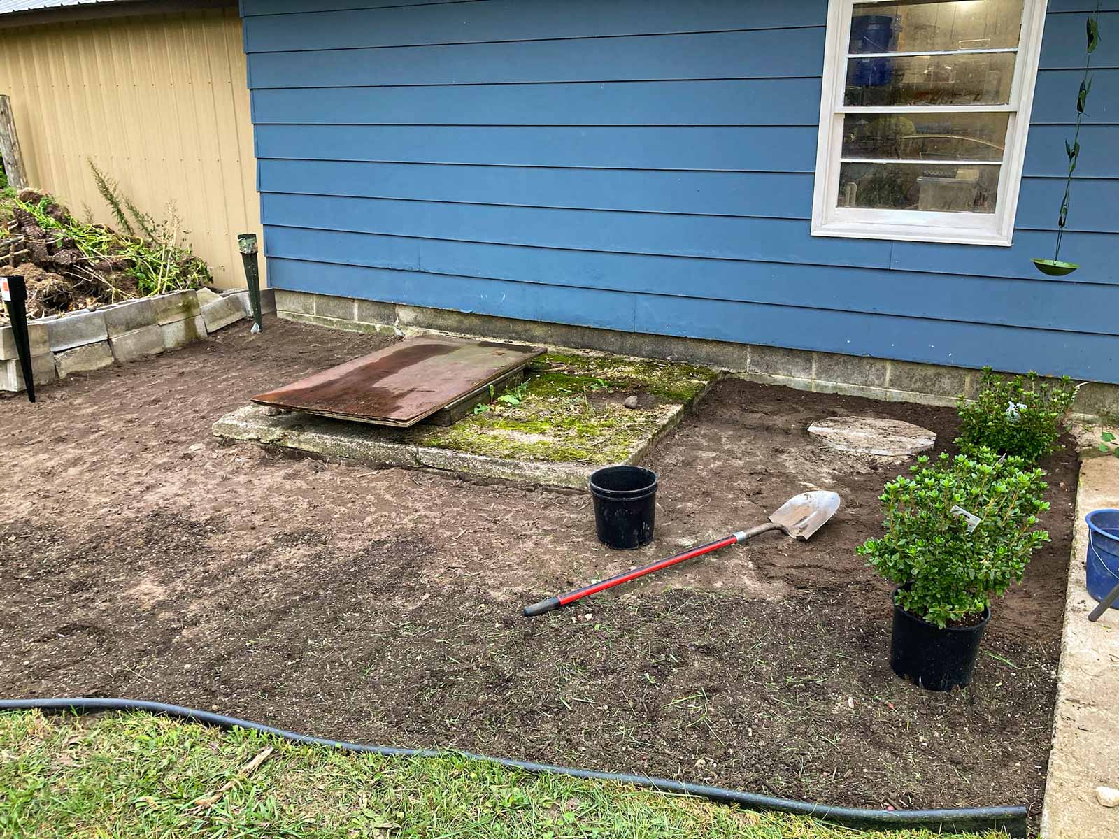 Again, it's not really a garden. But it had garden border edging already installed, so I decided to dig it out. This area surrounds the underground well house, so we need to be able to access it.