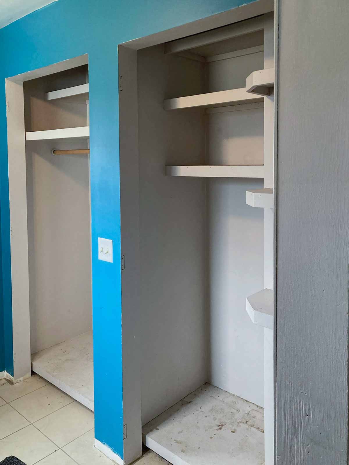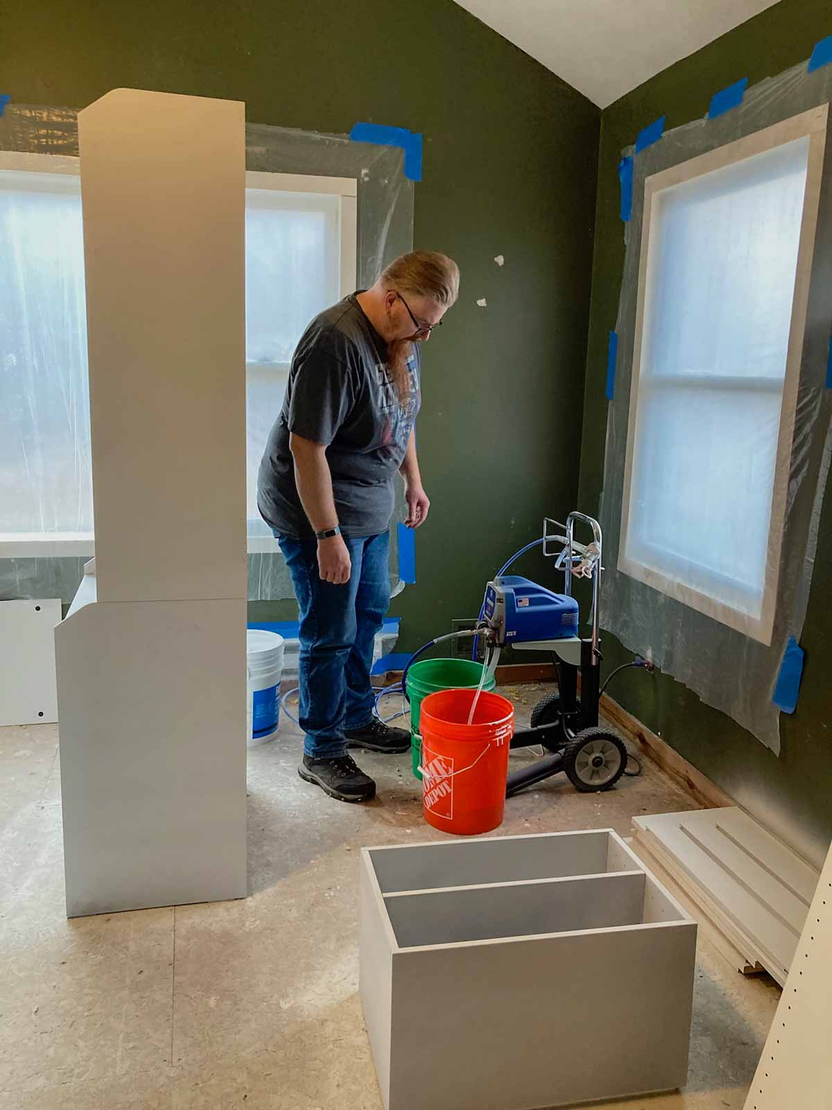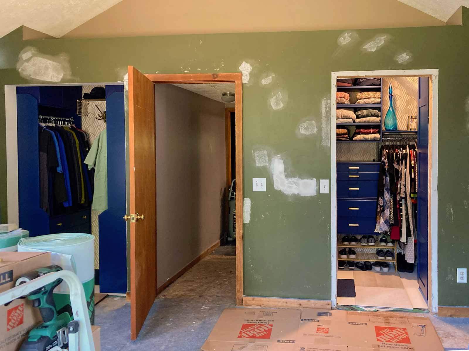 I wanted the cabinetry in the closets to match the color scheme of the bedroom. So Andy learned how to spray cabinets. He's the best!