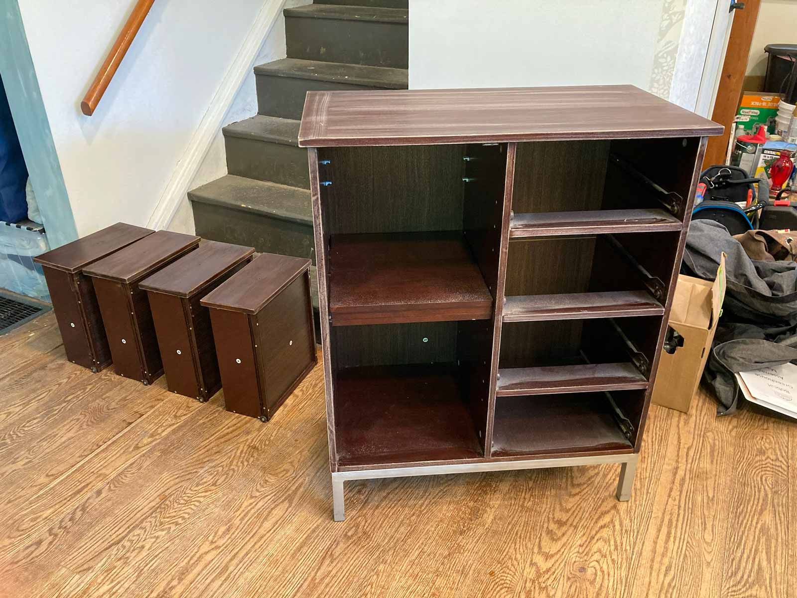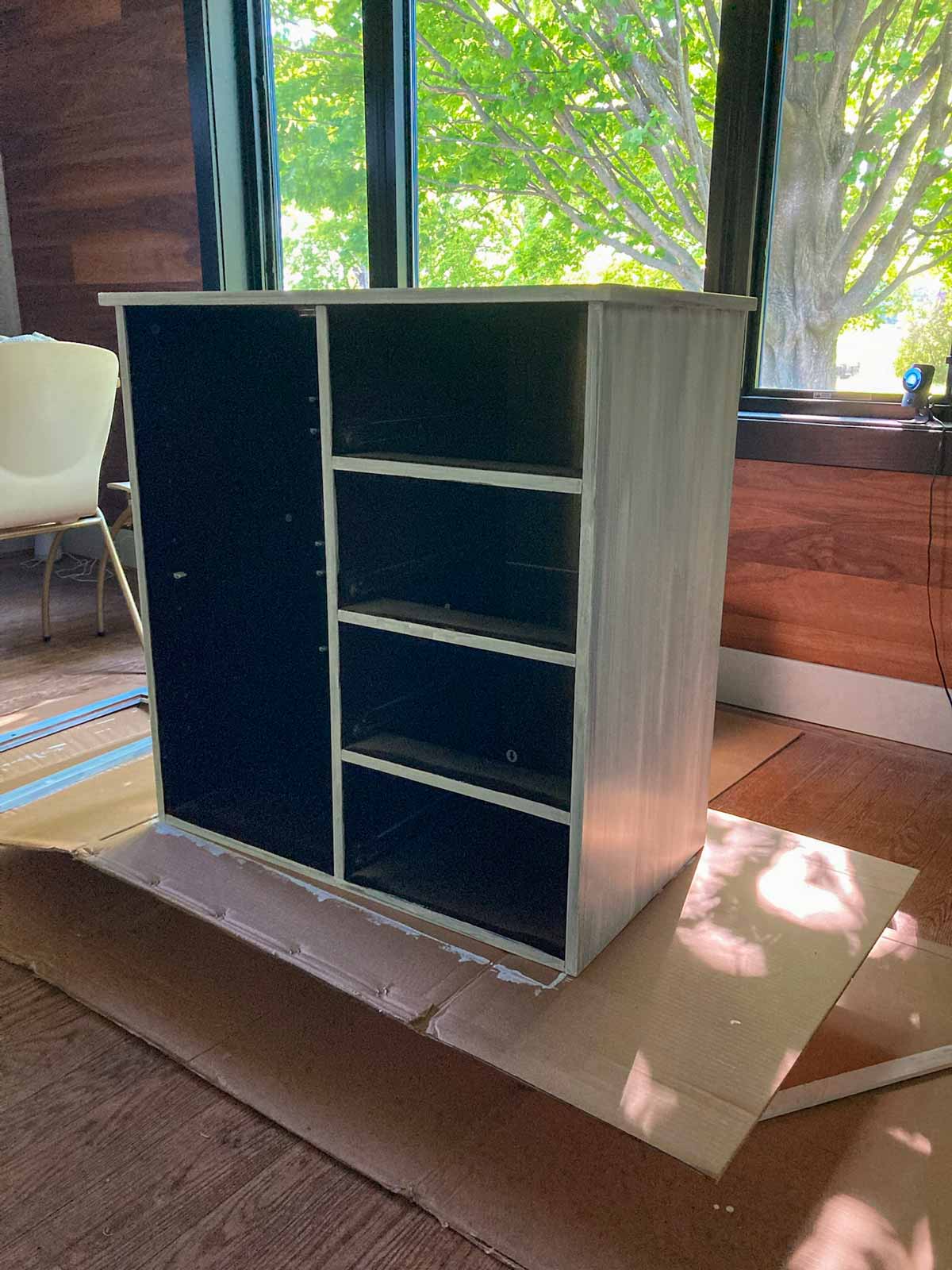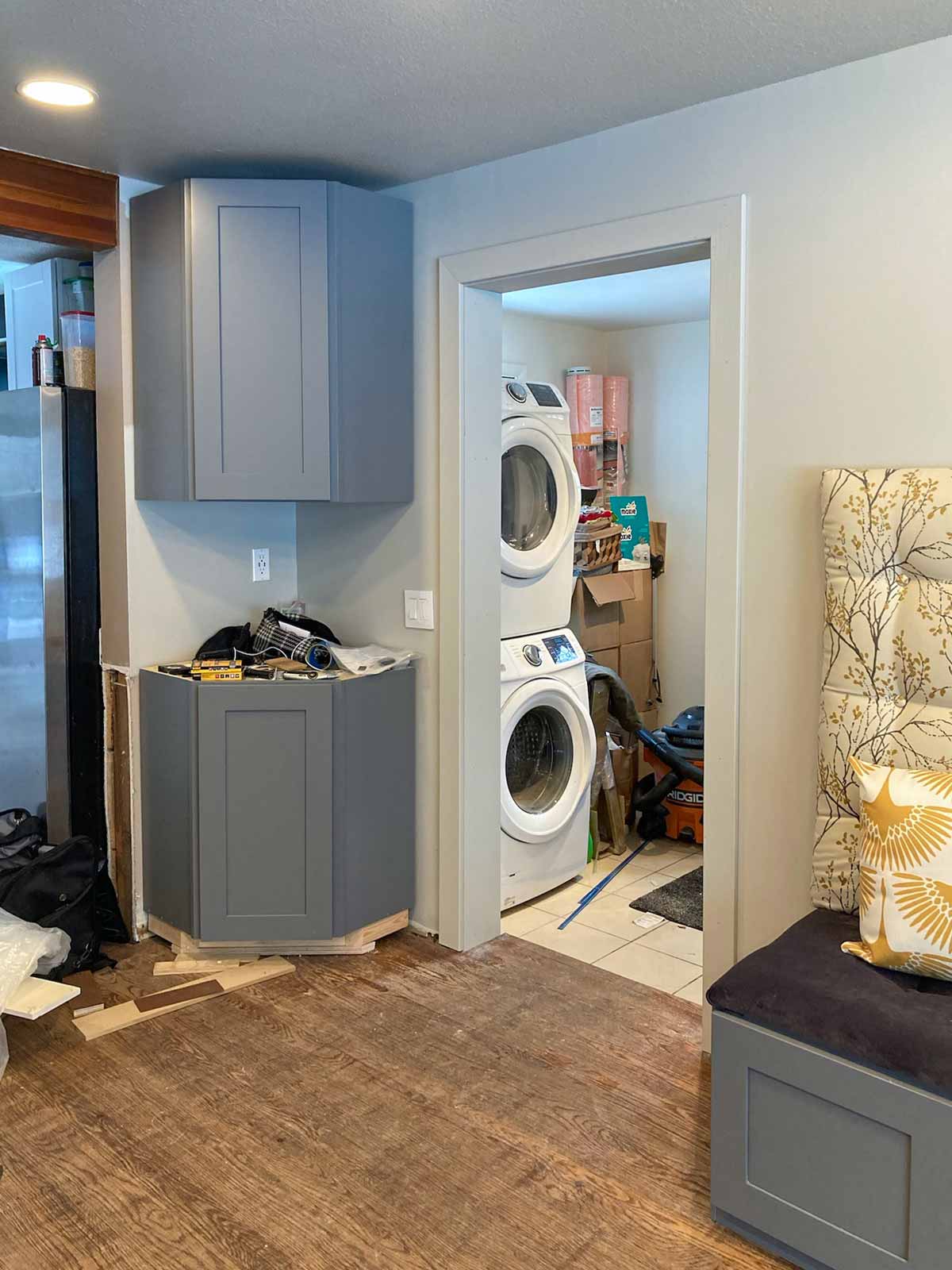 The cabinets are the same color that we will be installing in the kitchen (eventually!). There are more cabinets to come in the dining room, so keep reading!