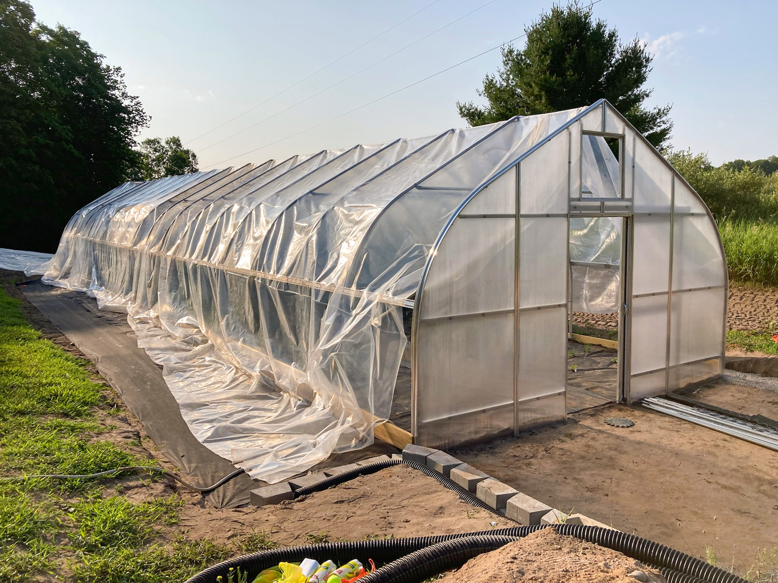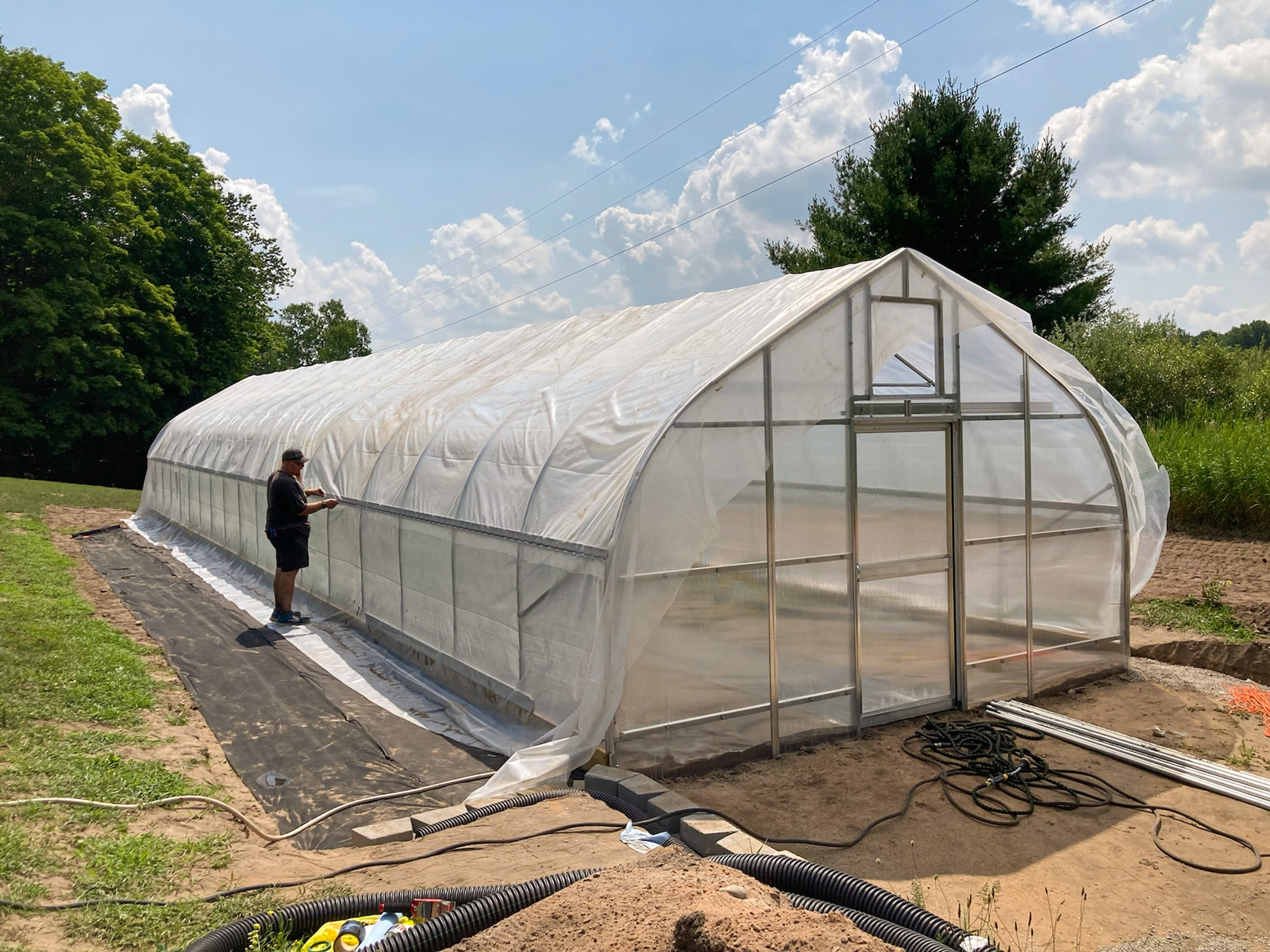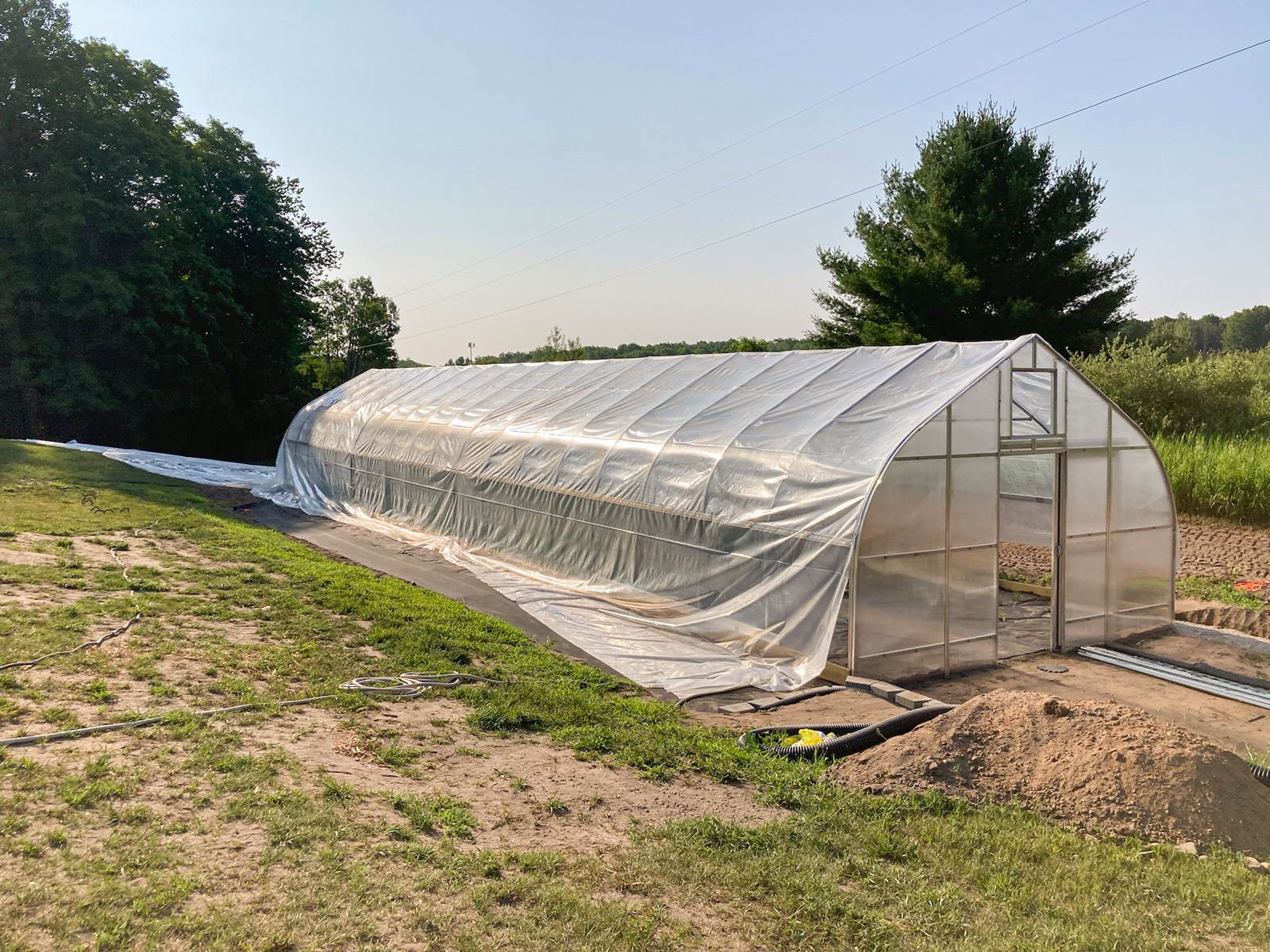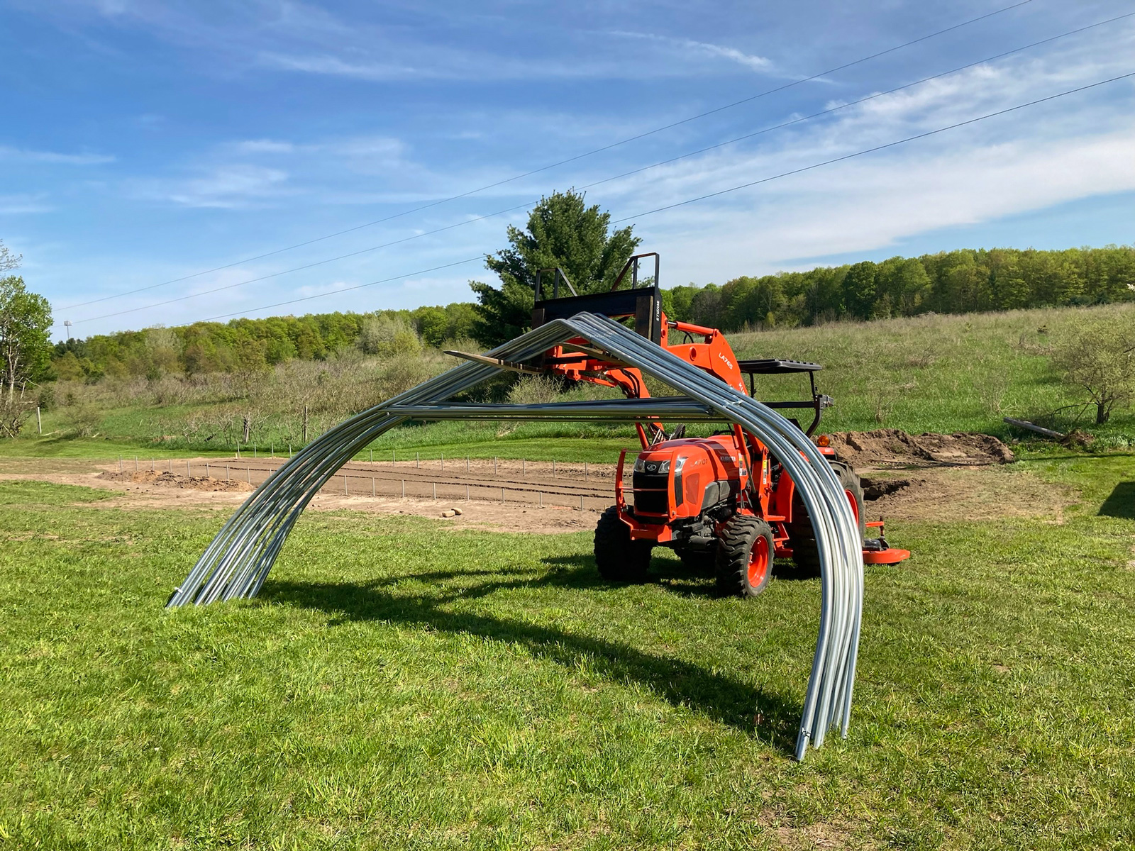With our first spring and summer behind us, we learned that northern Michigan has a lot of unexpected frosts. So, we decided it would be beneficial to install a garden structure to extend our growing season of fruits and vegetables. We purchased a kit online from Rimol Greenhouse systems.