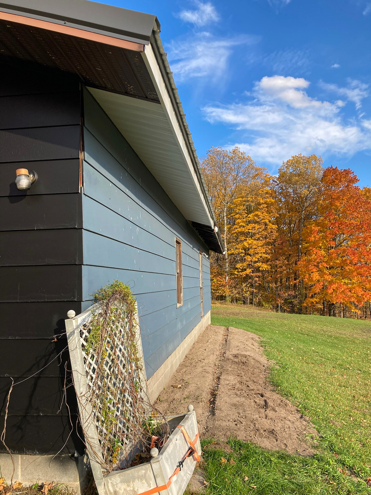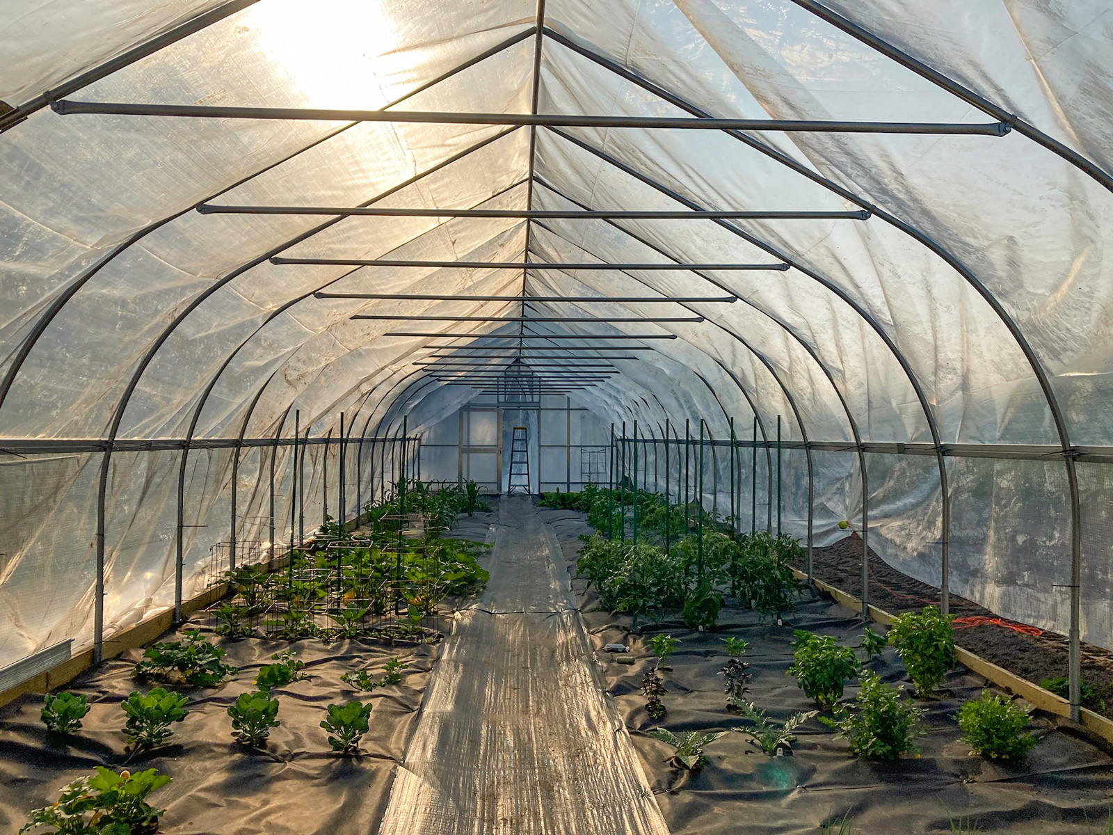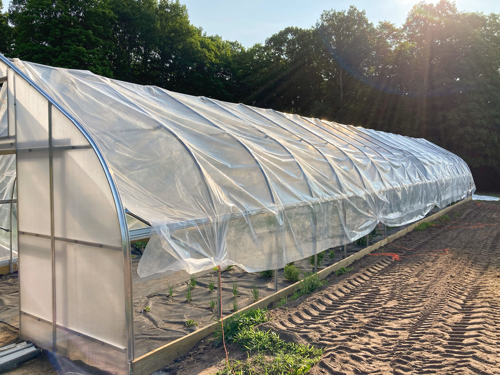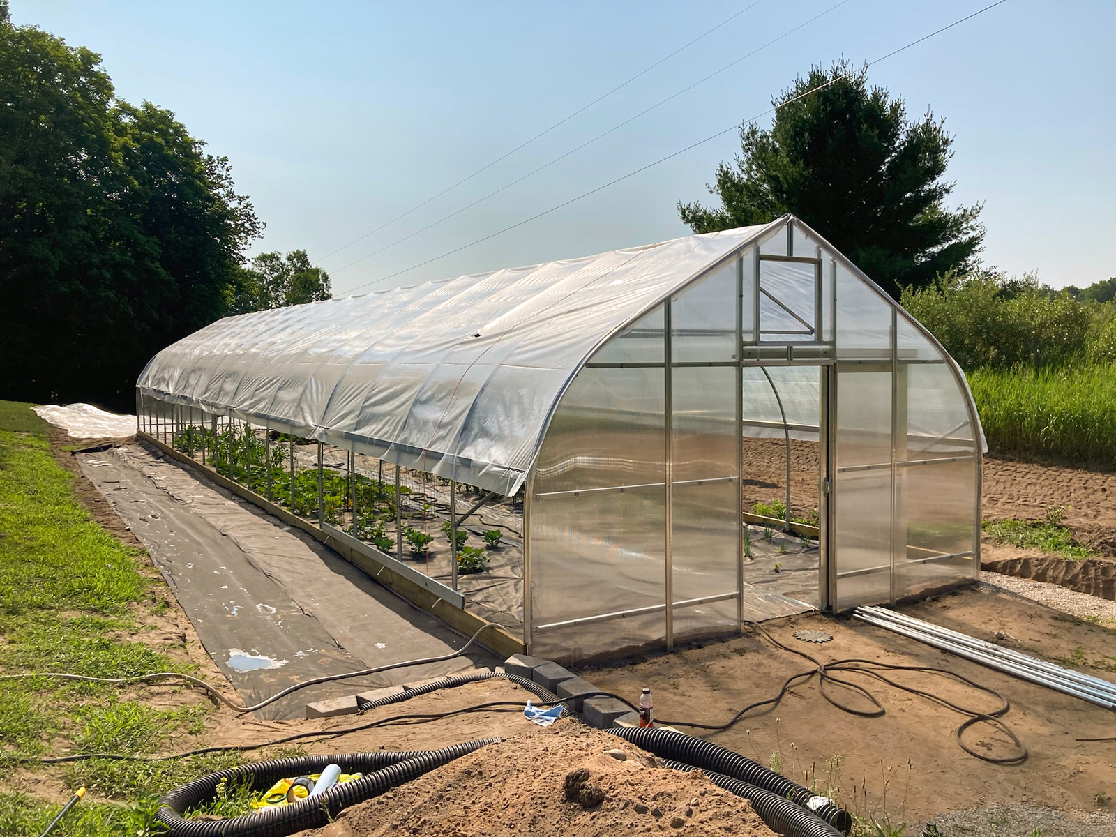 With our first spring and summer behind us, we learned that northern Michigan has a lot of unexpected frosts. So, we decided it would be beneficial to install a garden structure to extend our growing season of fruits and vegetables. We purchased a kit online from Rimol Greenhouse systems.