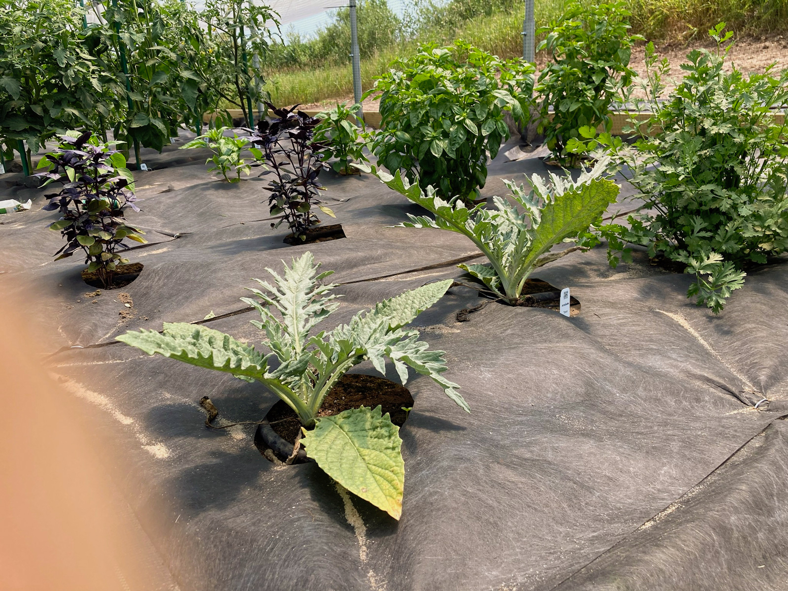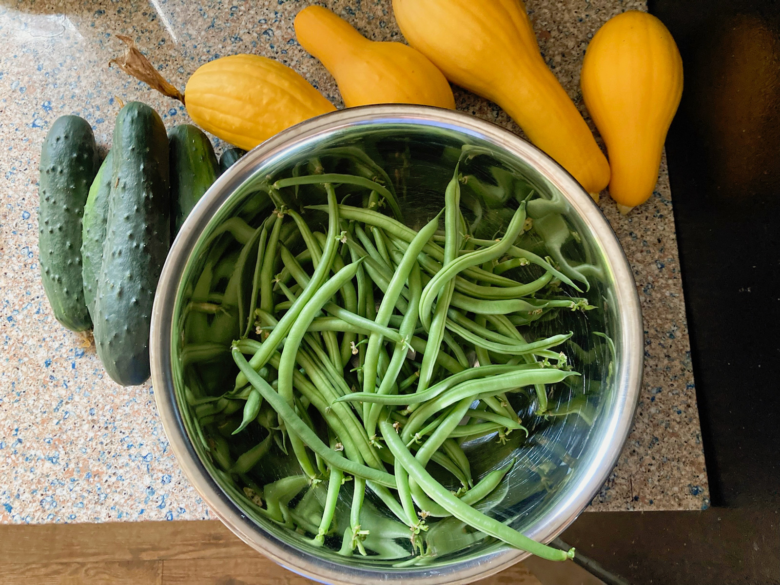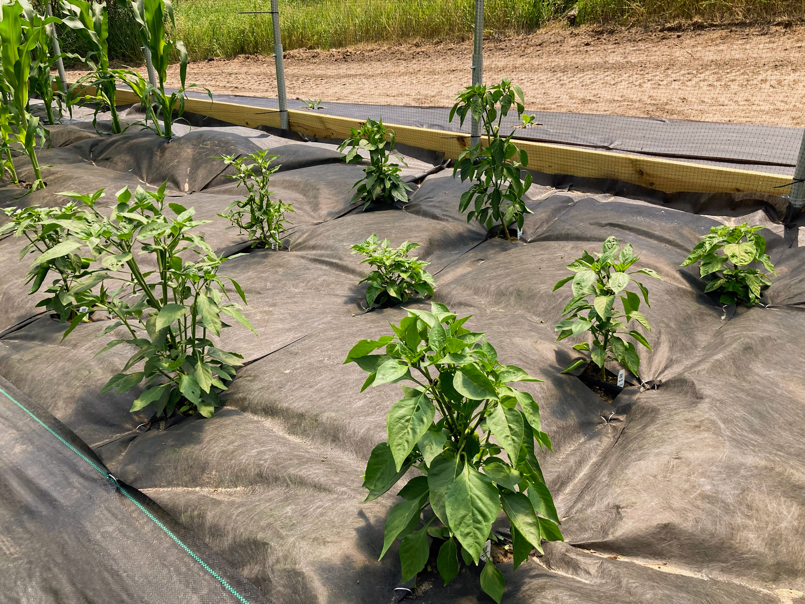 Some of our crops: kale, dill, butter lettuce, green beans, summer squash, eggplant, pickling cucumbers, chilies/peppers, tomatoes, and corn. Much more to come!