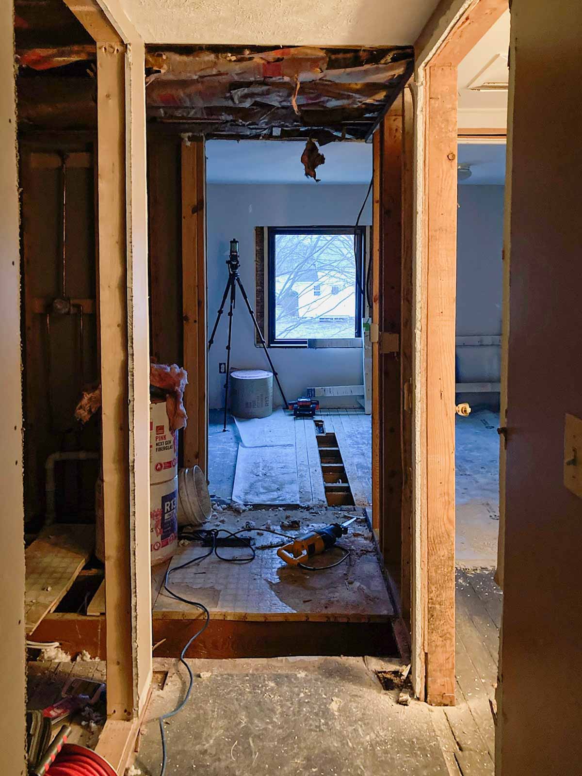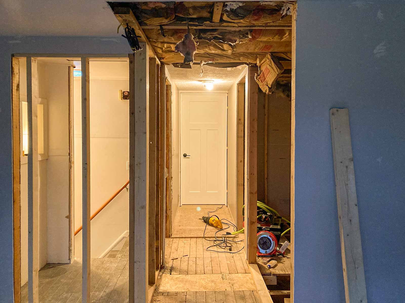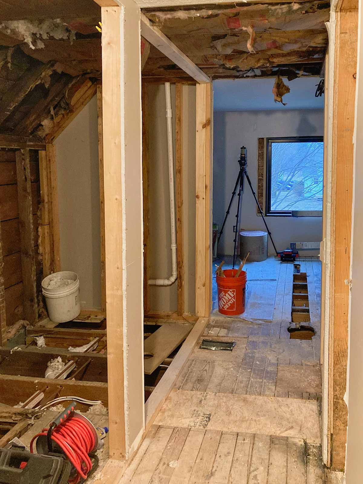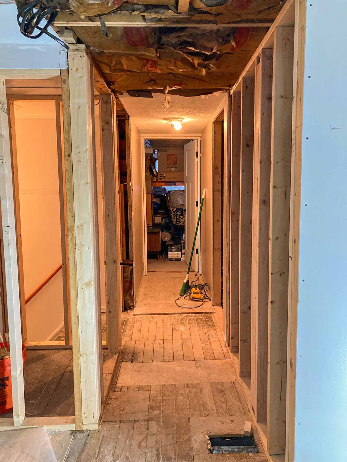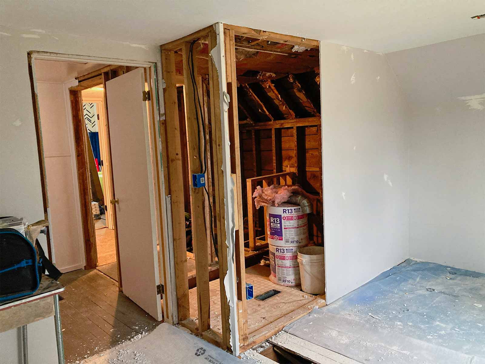 New bathroom entrance is cut open and framing begins.