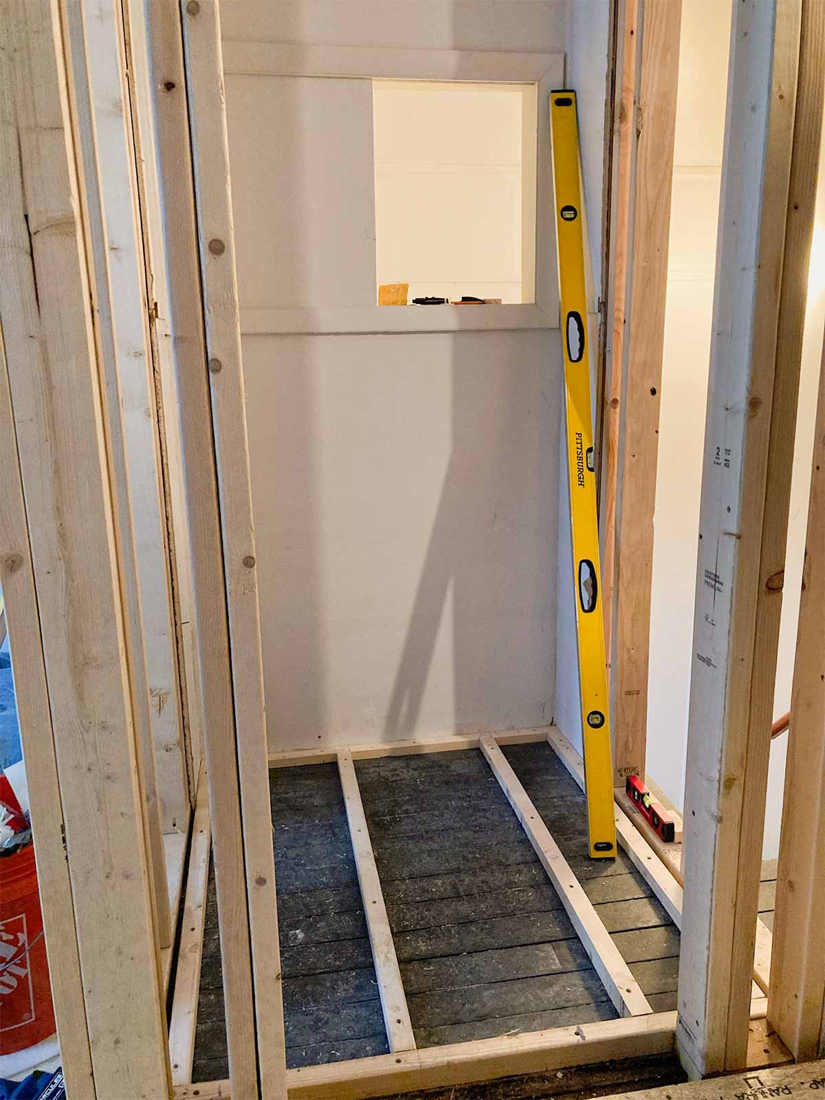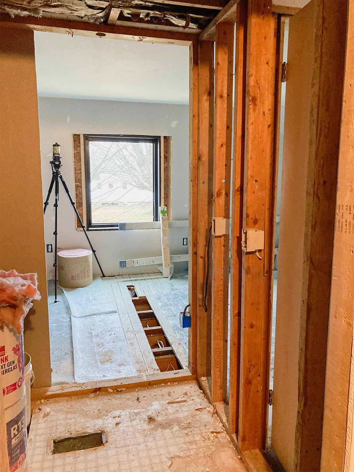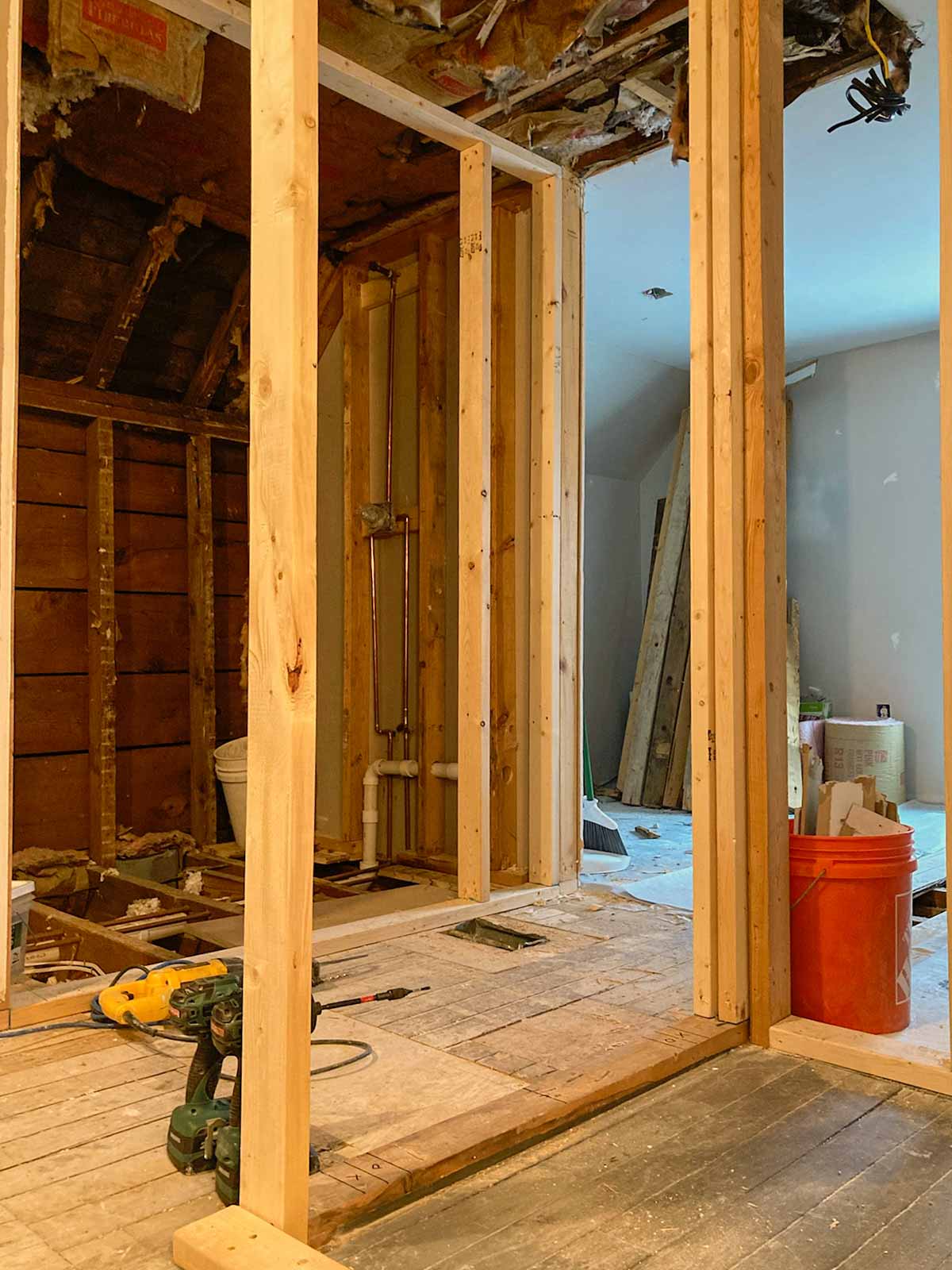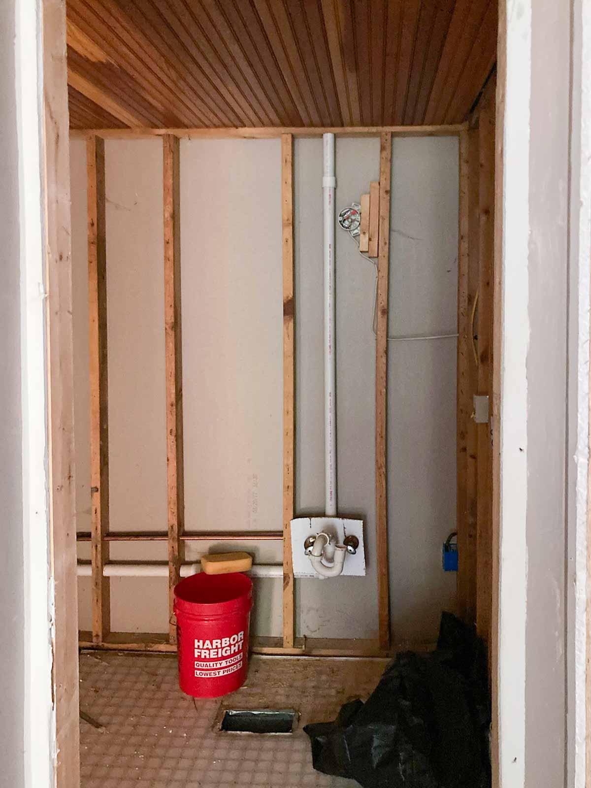 New bathroom entrance is cut open and framing begins.