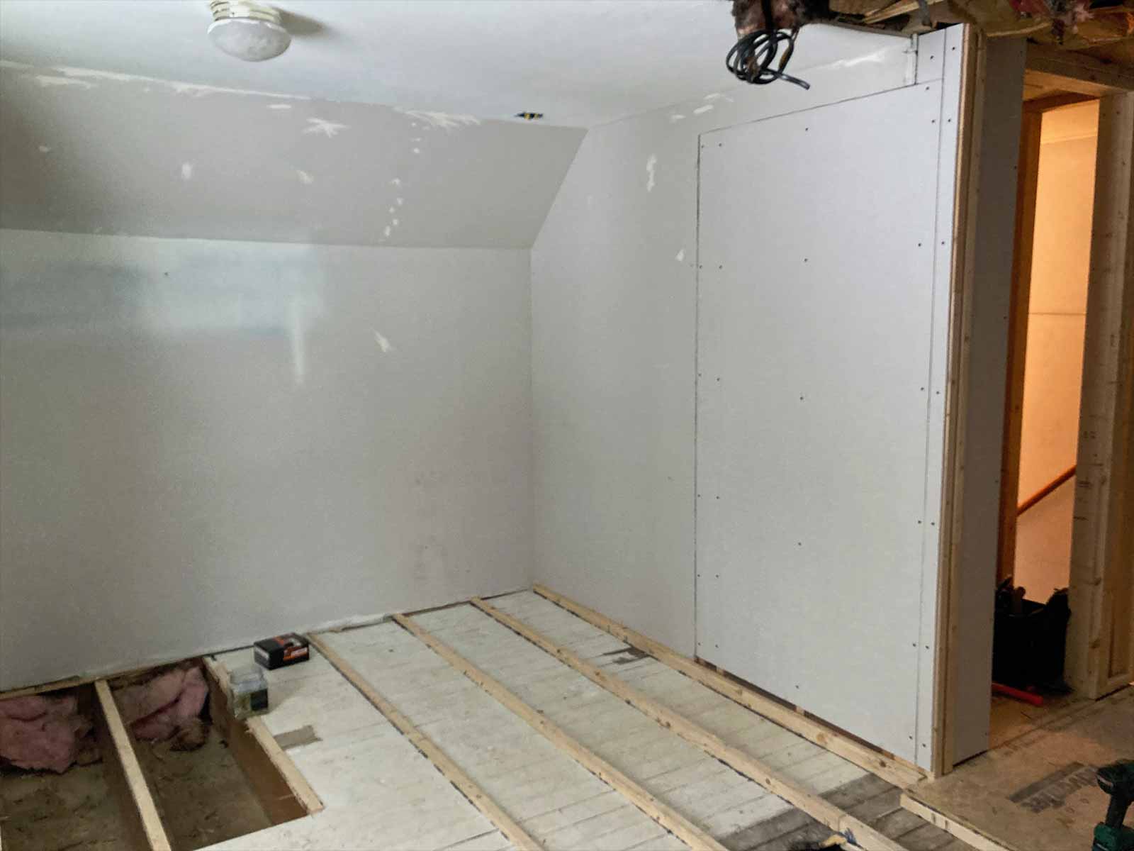 First, the layout at the top of the stairs into the guest bedroom and bathroom needed to be addressed.
