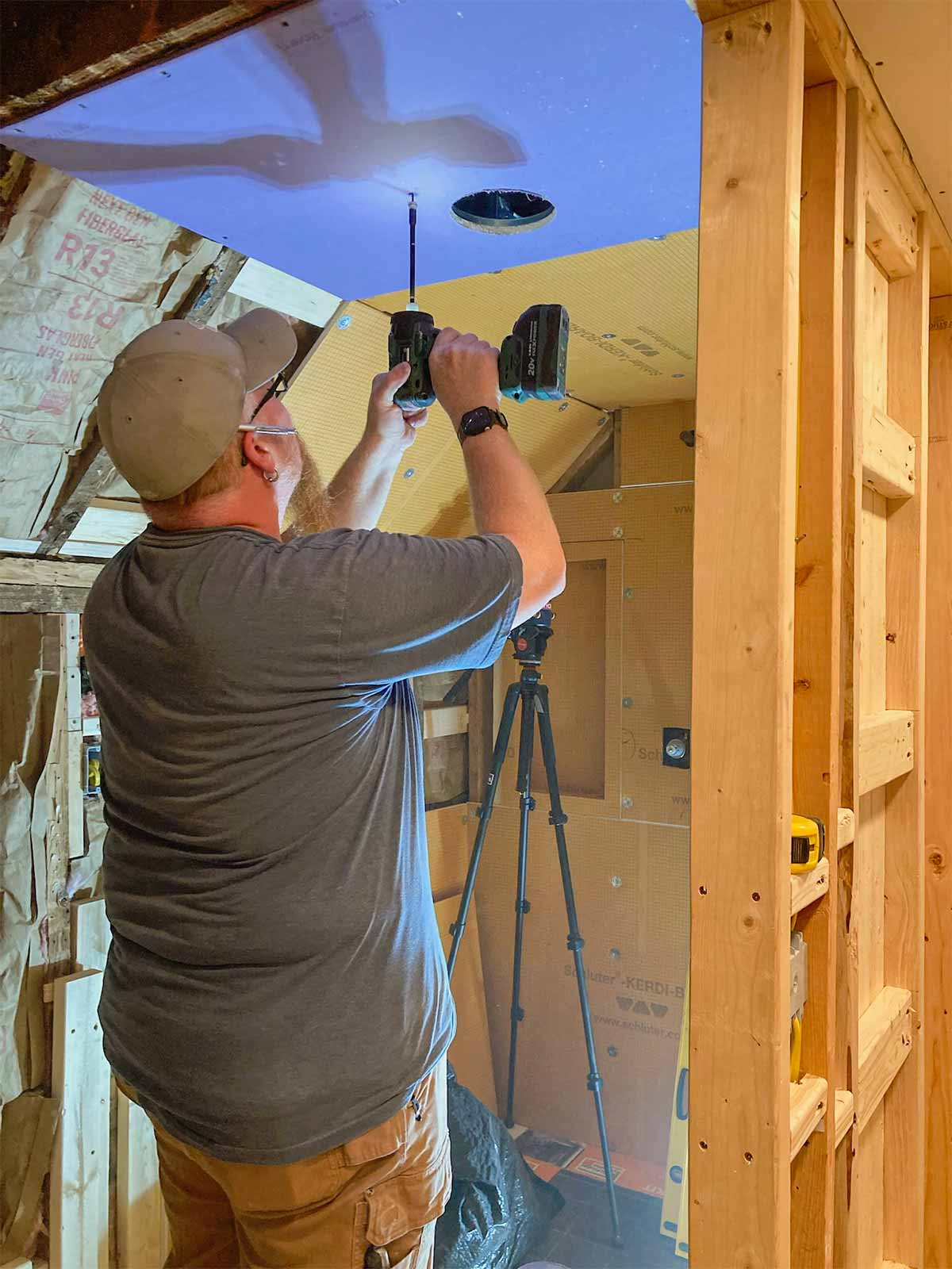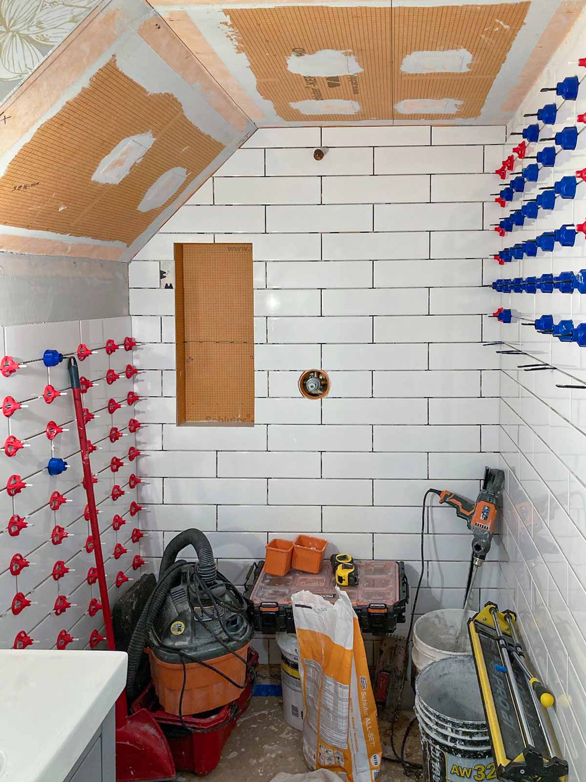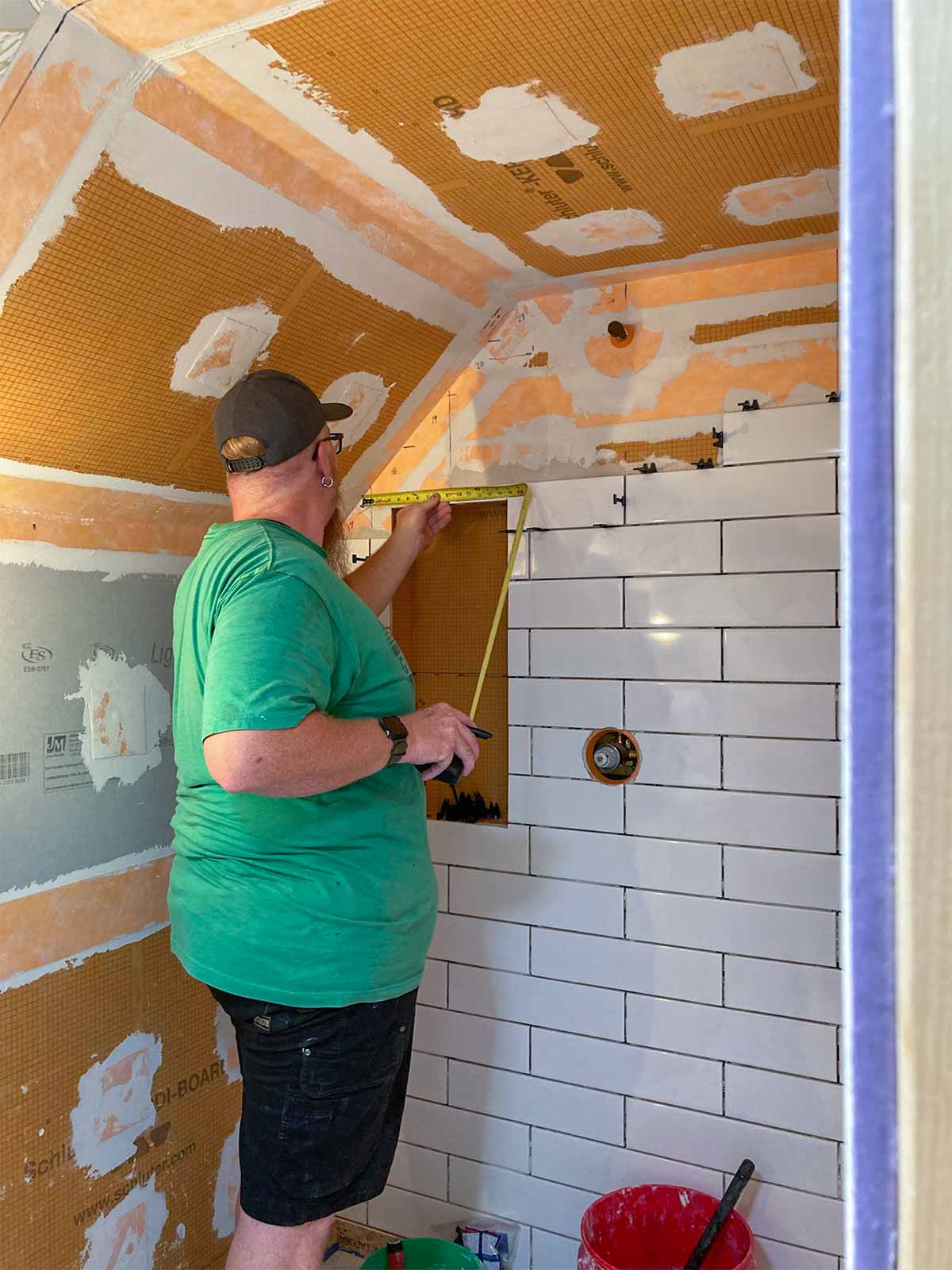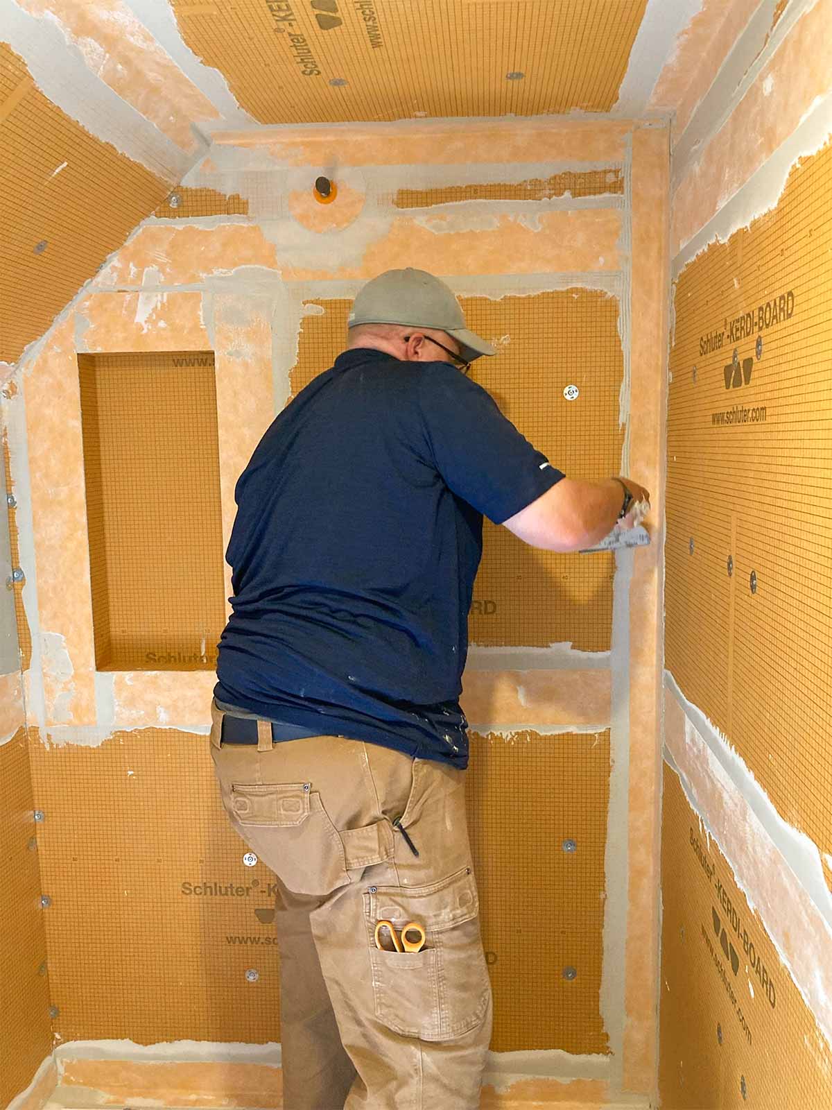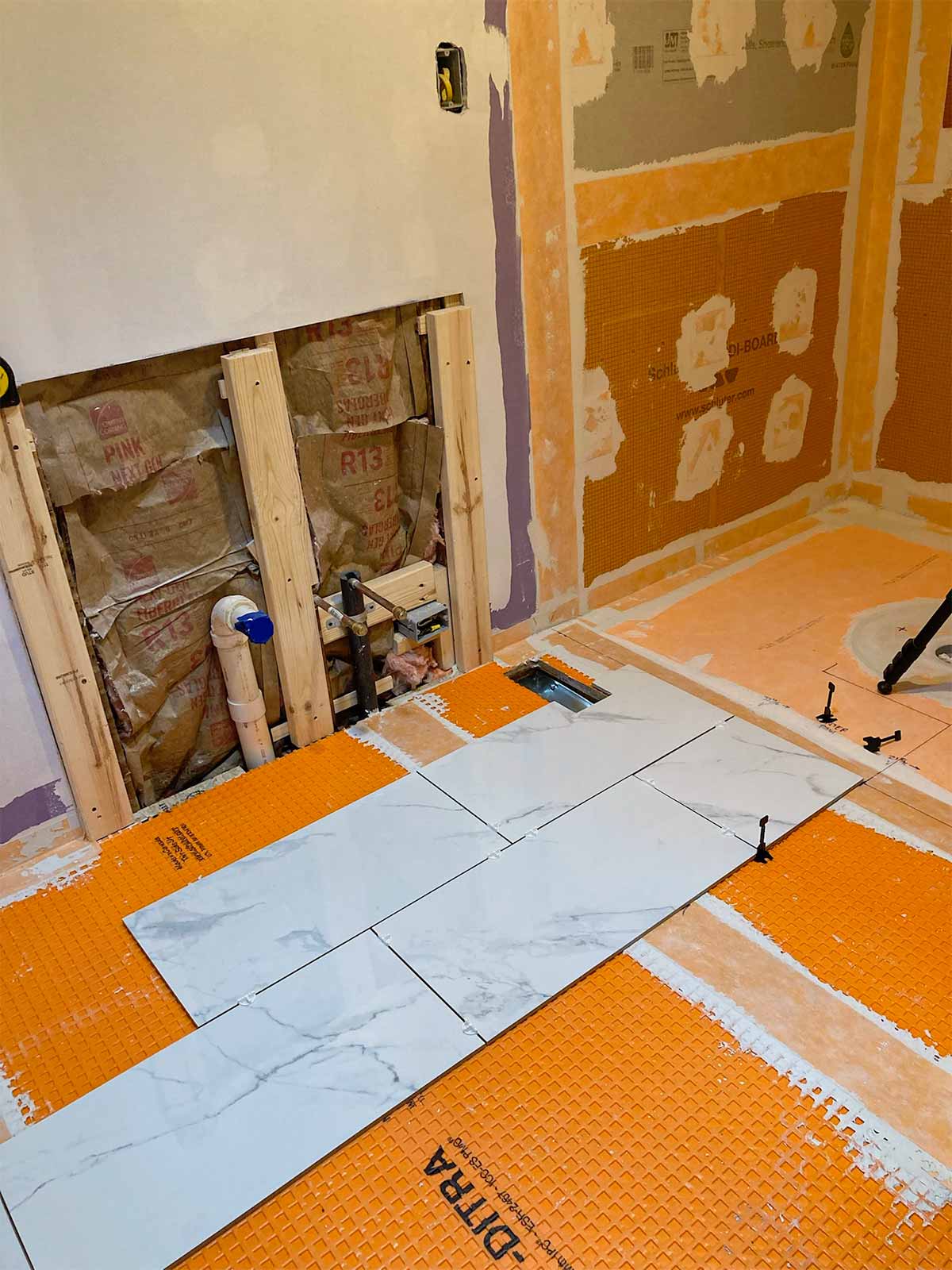 Anyone who has installed a new bathroom in the past two decades or so probably has used the Schluter waterproofing products. This was our first experience, but we've seen it done on YouTube many times. Thanks to David Blumke at MI North Flooring in Alanson for filling in the gaps in the materials we had previously purchased.