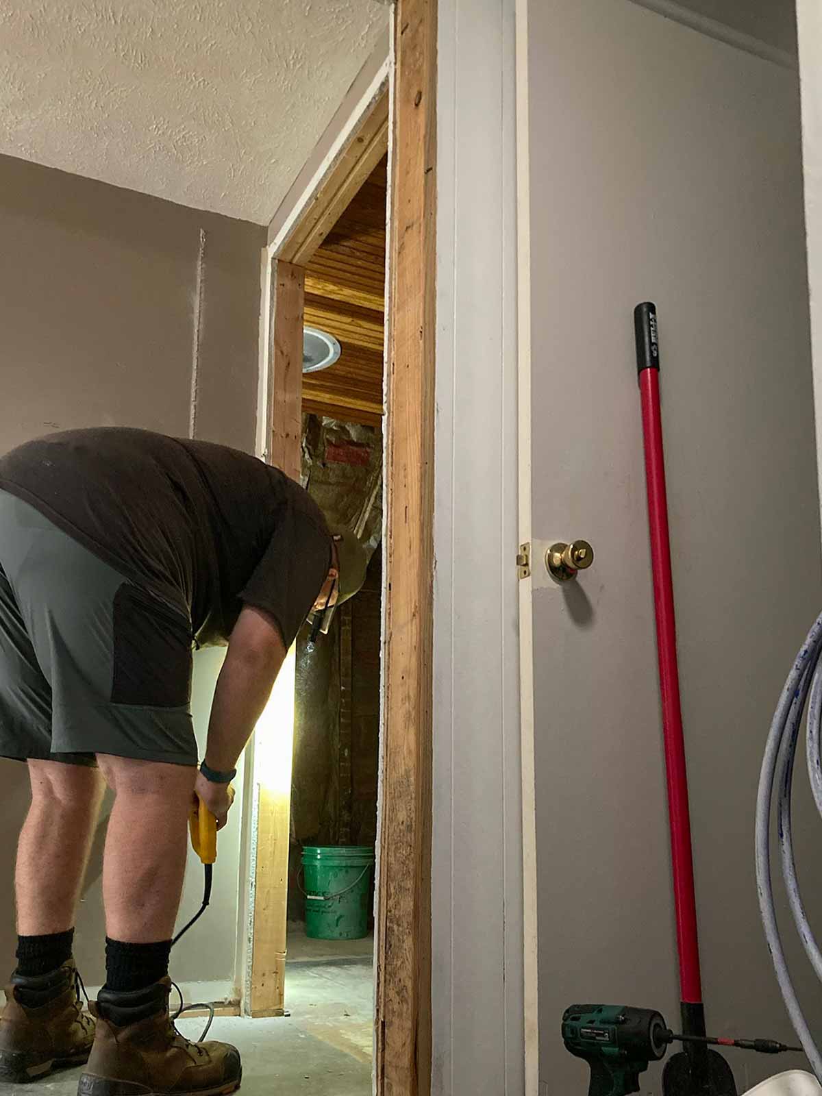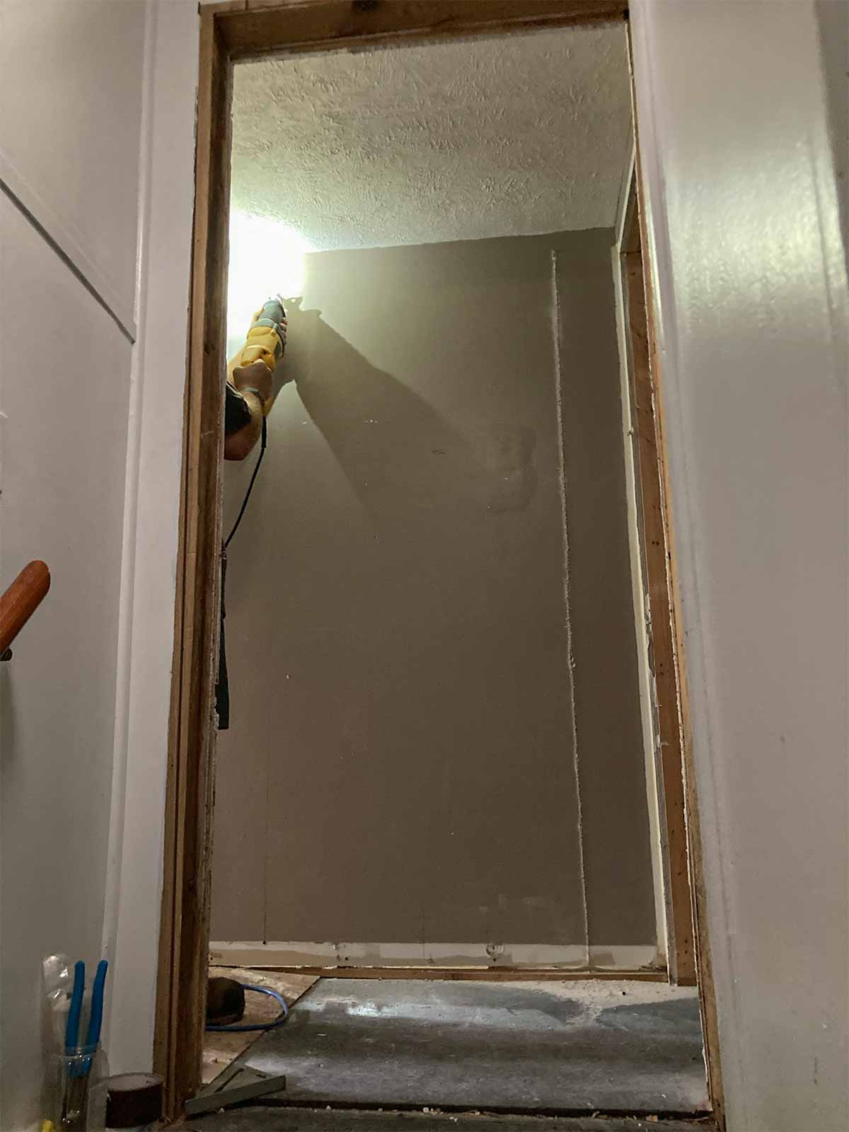 Cutting the new bathroom entrance…