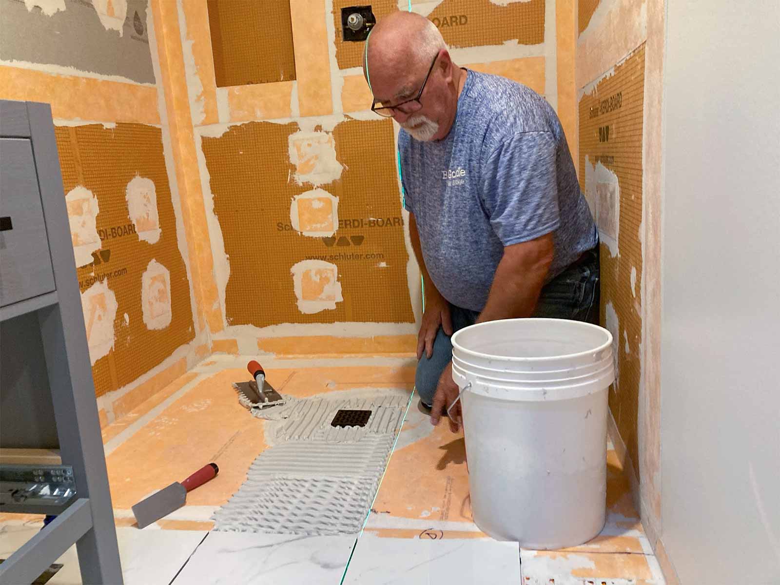 Andy gladly took some help from our neighbor, Bob Goode, who is a retired expert tiler. Thanks Bob!