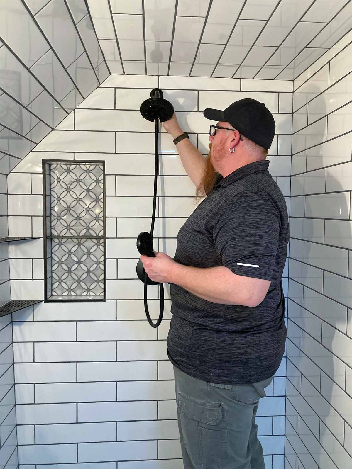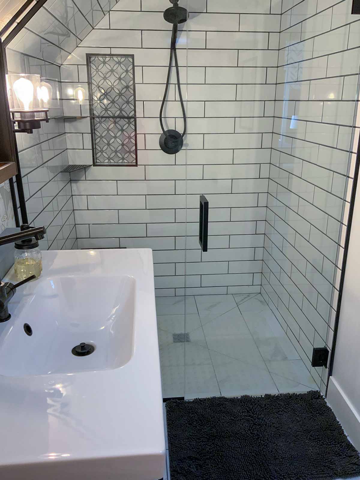 - Shower tile: Daltile large format subway tile purchased from The Home Depot