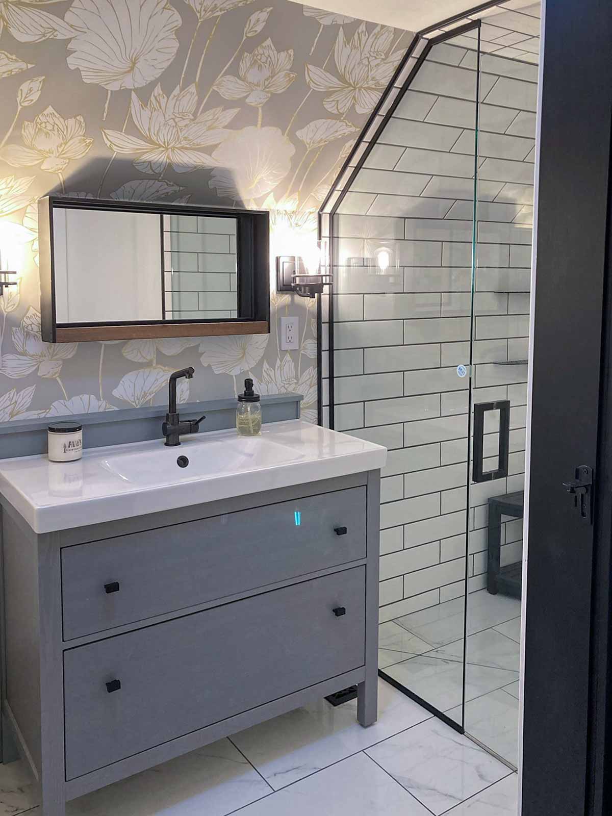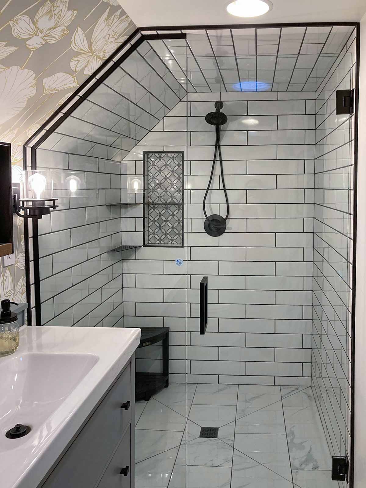 - Corner bench in shower is from Amazon: KaimuBench in black.