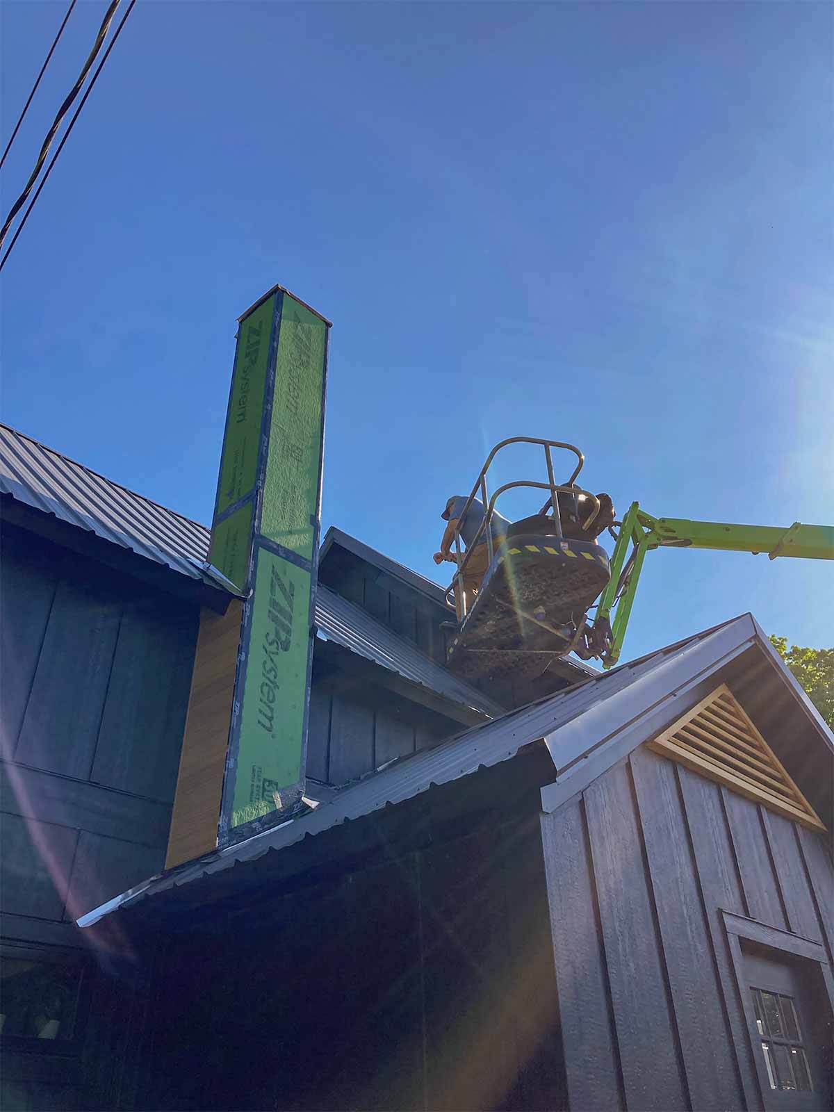 Since there was not a window in the bathroom, we decided to add a sun tunnel through the roof. This required renting a lift to cut a hole in the roof (gasp!) and install it. We purchased the sun tunnel from Home Depot: Velux 10 inch acrylic dome sun tunnel skylight.