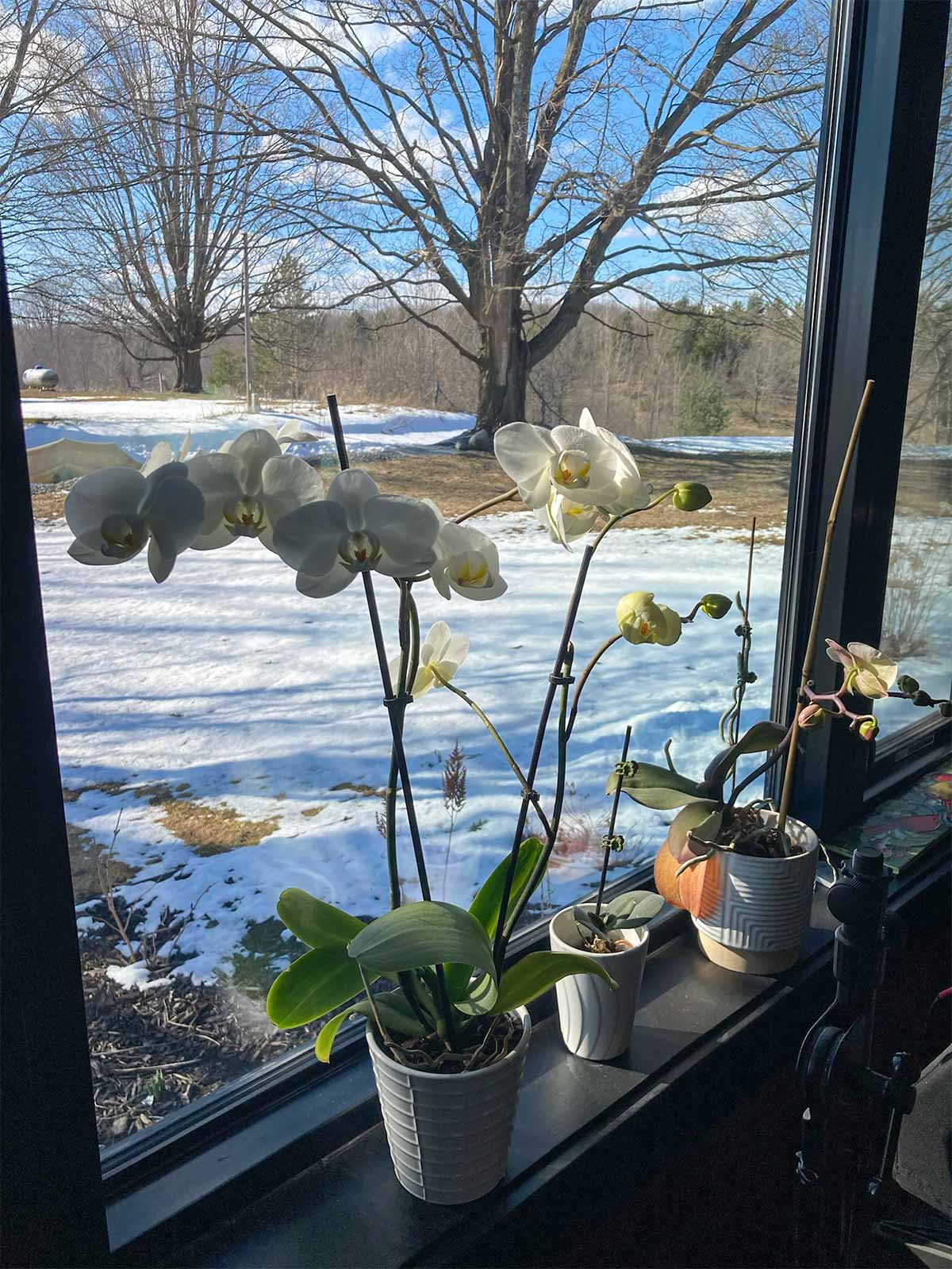 We went skiing for the last time of the season at Nubs Nob on Thursday, March 27. It was a beautiful sunny day. By the time we came home that afternoon, the greenhouse temperature was 95 degrees! The orchids are in full bloom in the front window, the bulbs are beginning to pop up in the front garden, and it's beginning to feel like spring. And then…