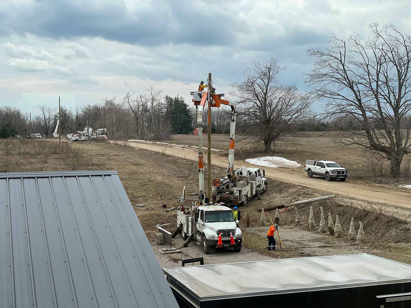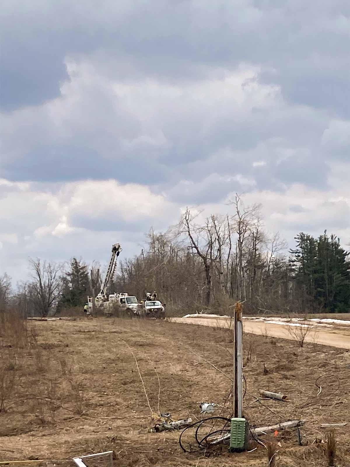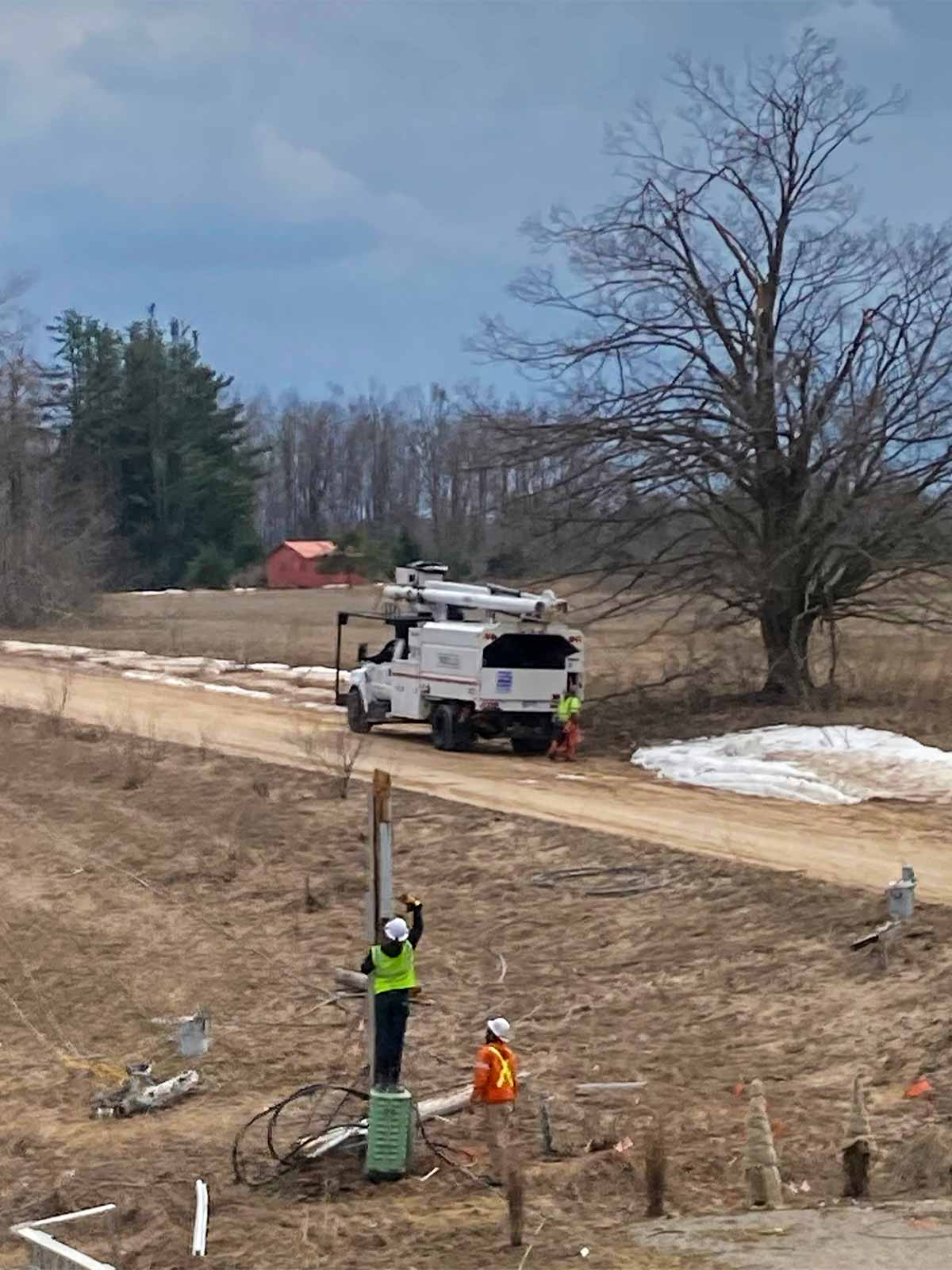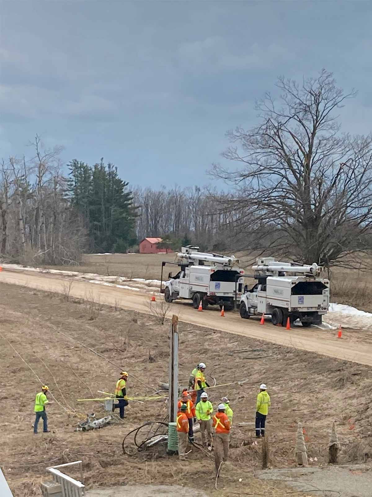 The county and municipal workers from across northern Michigan worked endless hours. Once this was declared a state emergency, state workers, as well as those from other states, and the National Guard, were coming to the rescue. A very close friend of ours had put in over 200 hours of work from Friday night through Thursday. People were providing workers with free meals, and restaurants were doing this as well. Neighbors were also helping neighbors in any way they could. By Thursday afternoon on April 3, most of Indian River had power restored. The grocery store and gas stations were back in business.