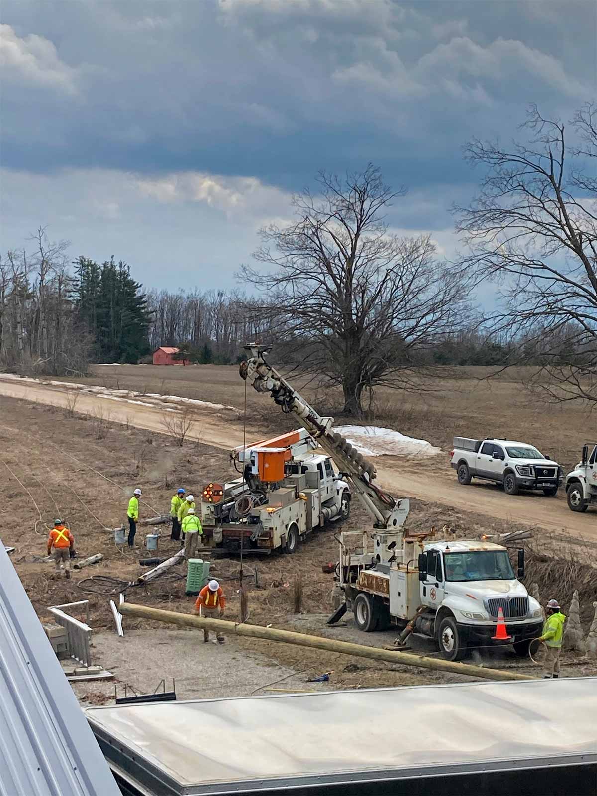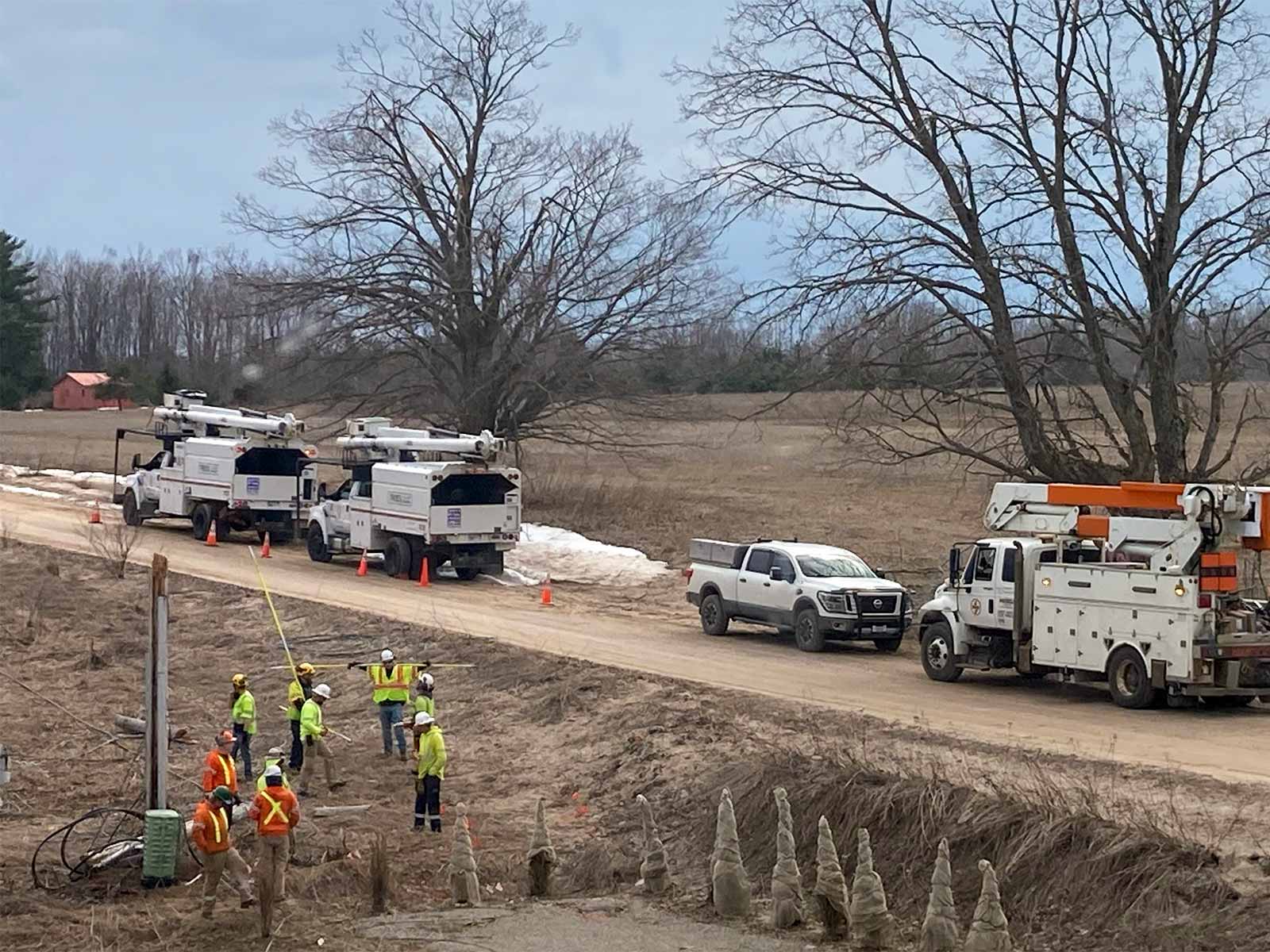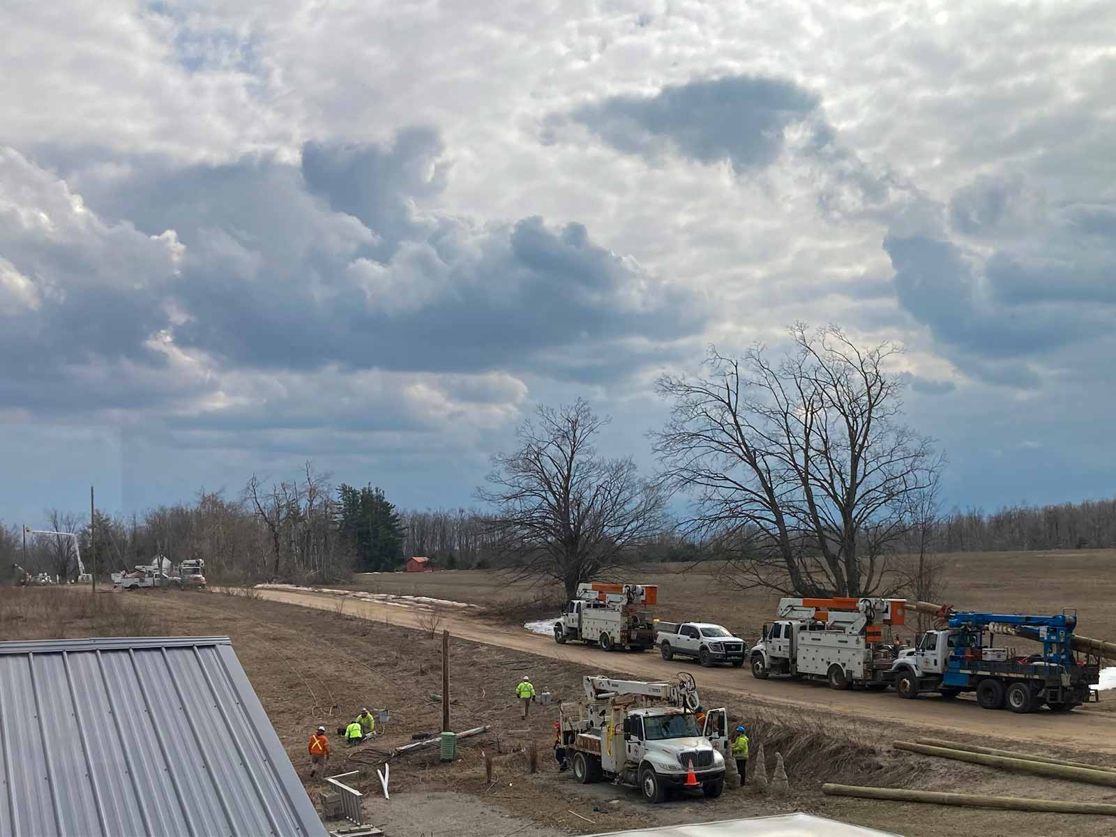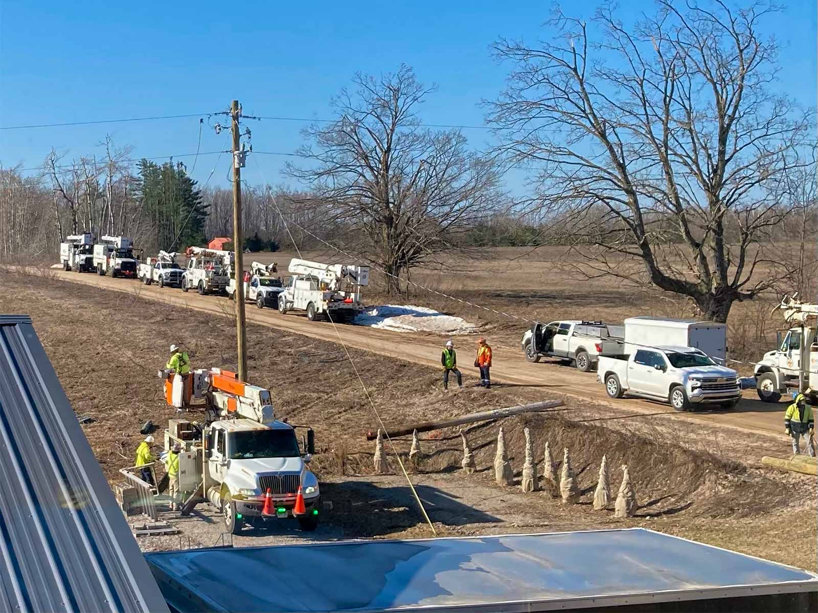 The county and municipal workers from across northern Michigan worked endless hours. Once this was declared a state emergency, state workers, as well as those from other states, and the National Guard, were coming to the rescue. A very close friend of ours had put in over 200 hours of work from Friday night through Thursday. People were providing workers with free meals, and restaurants were doing this as well. Neighbors were also helping neighbors in any way they could. By Thursday afternoon on April 3, most of Indian River had power restored. The grocery store and gas stations were back in business.