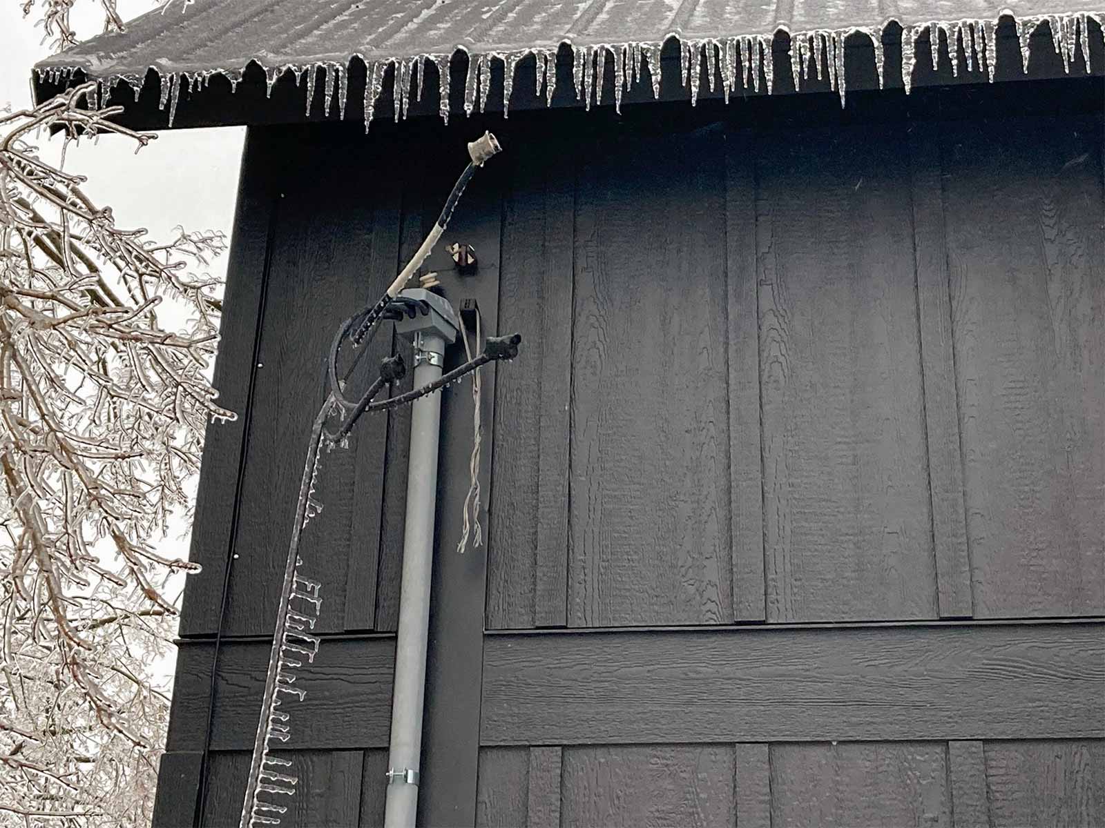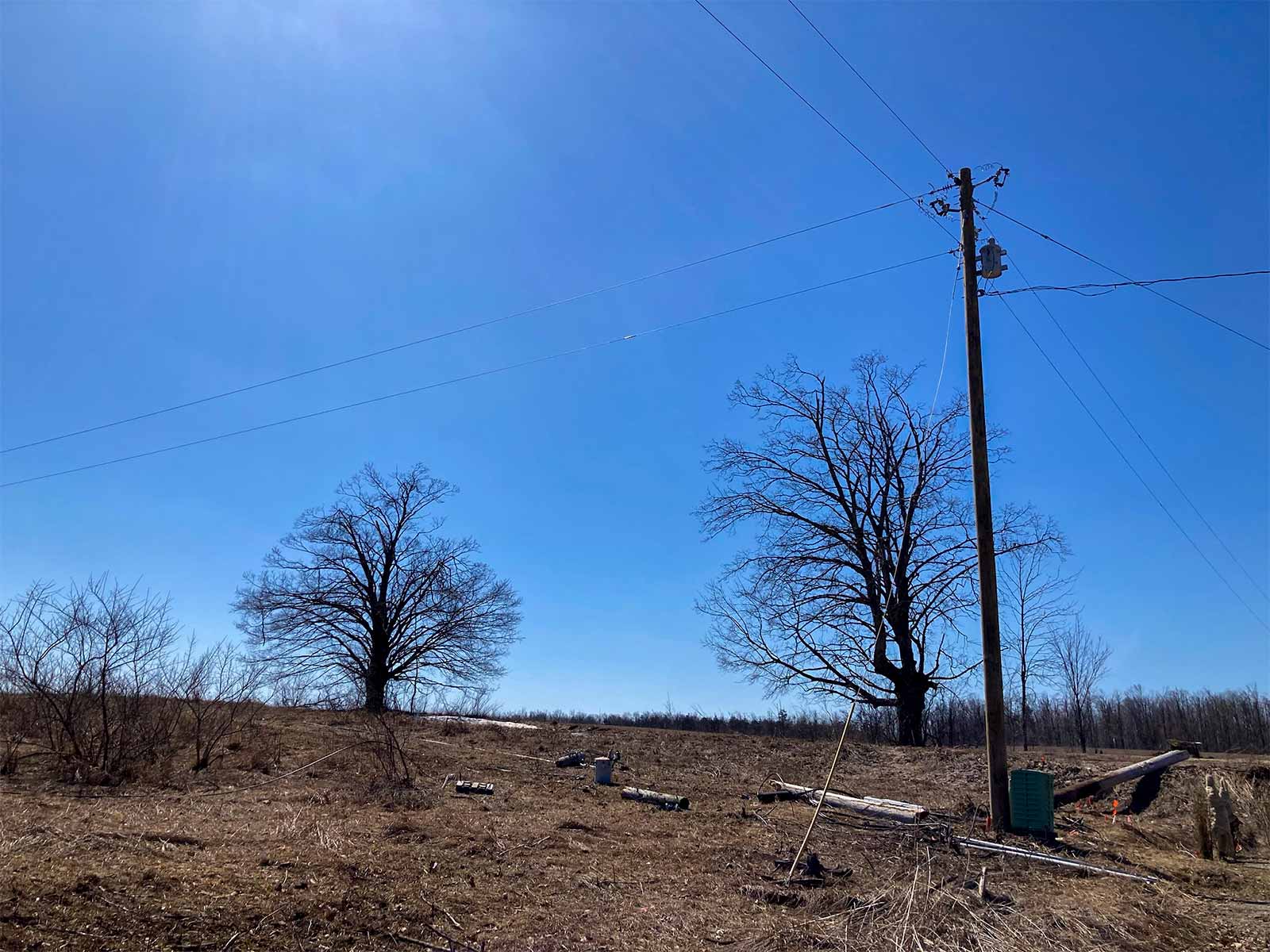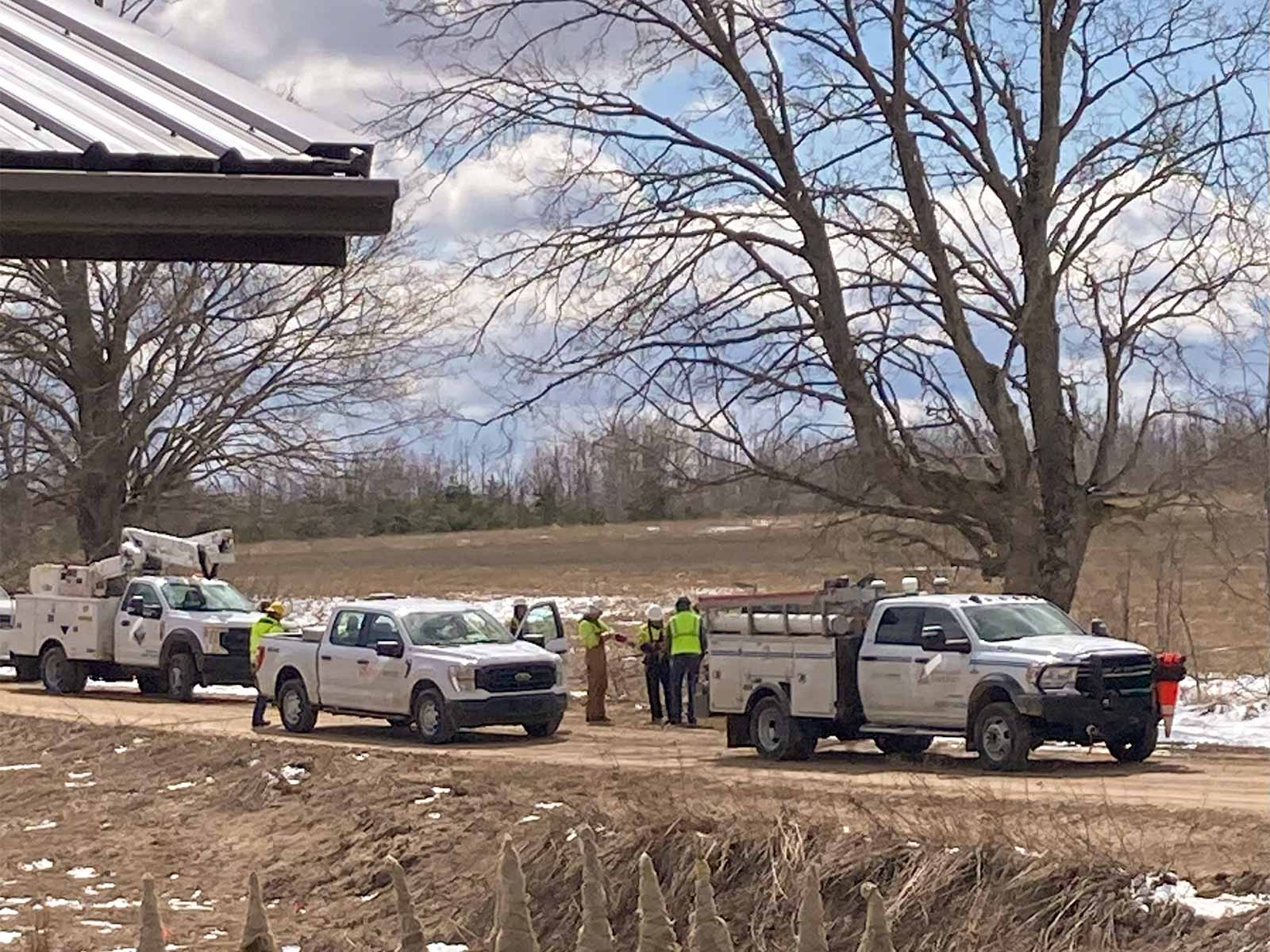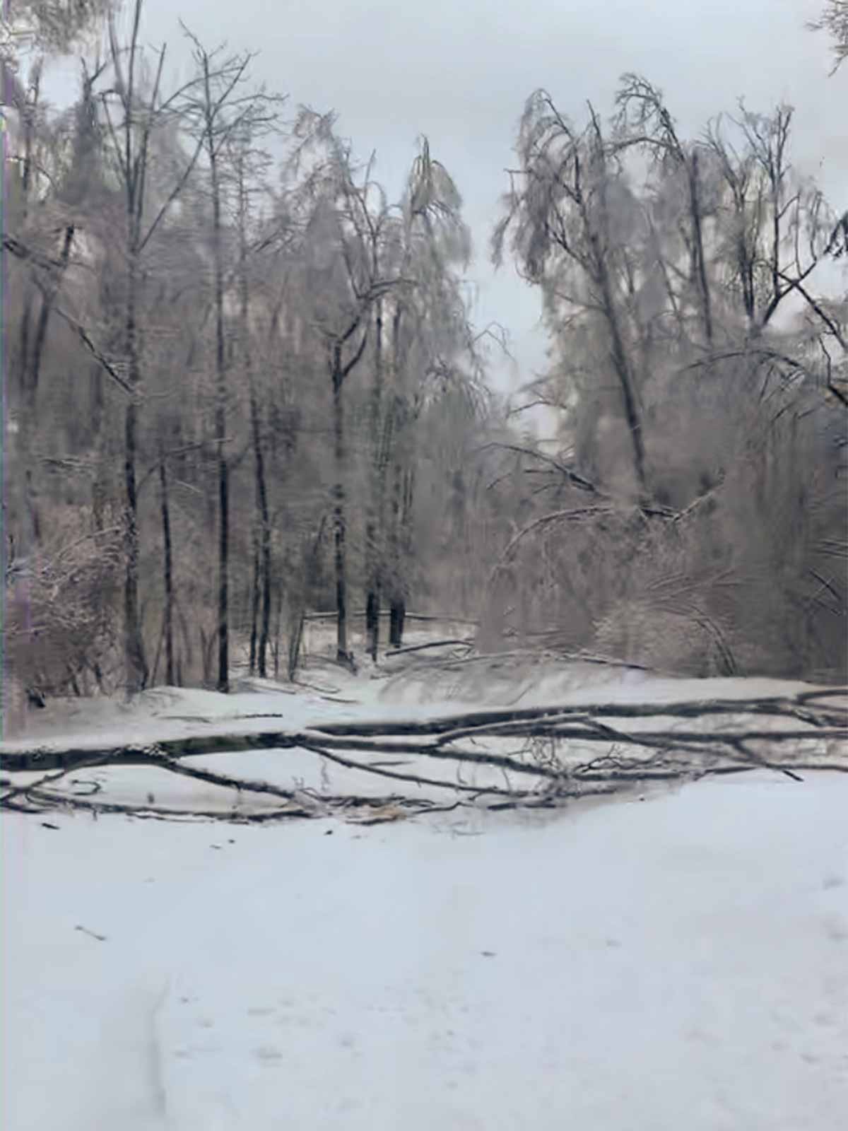Overnight into Sunday, March 30, we heard a large crash that shook the entire house. It sounded like a tree fell on the house. When we awakened, we saw that the utility pole closest to our house was snapped in two and power lines were laying across the street. After further investigation, we found out what the crash was that we heard overnight. Our service lines had ripped off the house as the utility pole snapped. There were tree limbs down everywhere and other utility poles were ready to snap. Throughout Sunday and Monday, it sounded like gunshots in the woods as tree limbs, and trees, came crashing down.