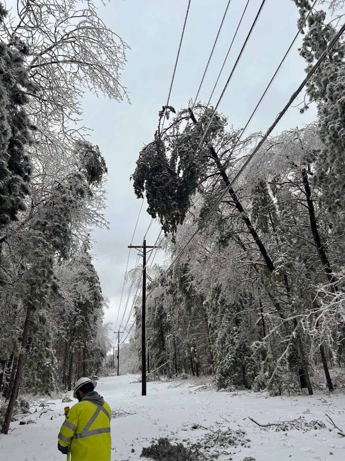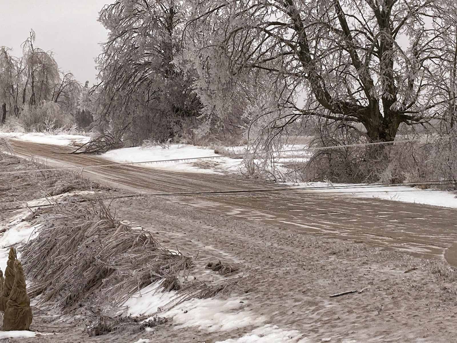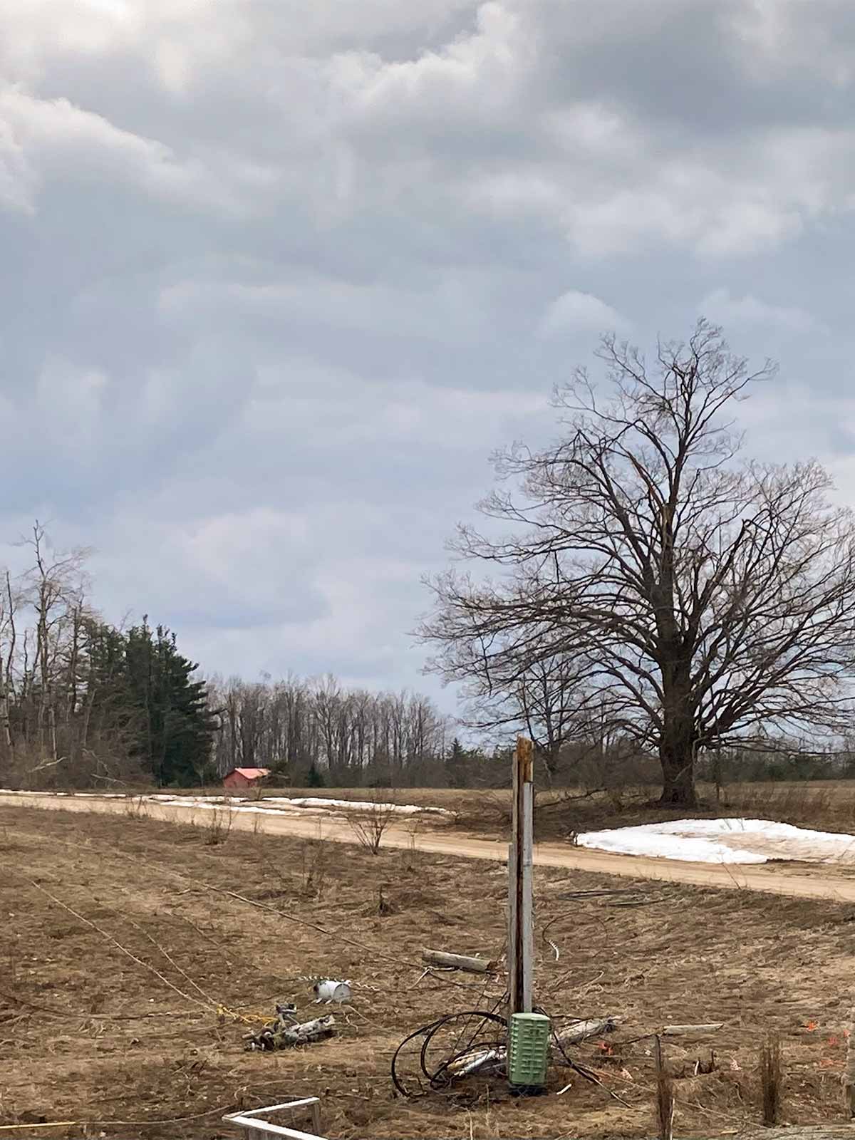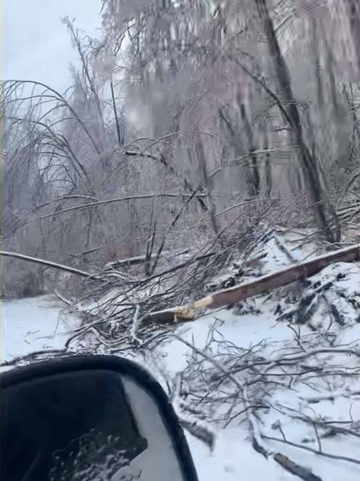 Overnight into Sunday, March 30, we heard a large crash that shook the entire house. It sounded like a tree fell on the house. When we awakened, we saw that the utility pole closest to our house was snapped in two and power lines were laying across the street. After further investigation, we found out what the crash was that we heard overnight. Our service lines had ripped off the house as the utility pole snapped. There were tree limbs down everywhere and other utility poles were ready to snap. Throughout Sunday and Monday, it sounded like gunshots in the woods as tree limbs, and trees, came crashing down.