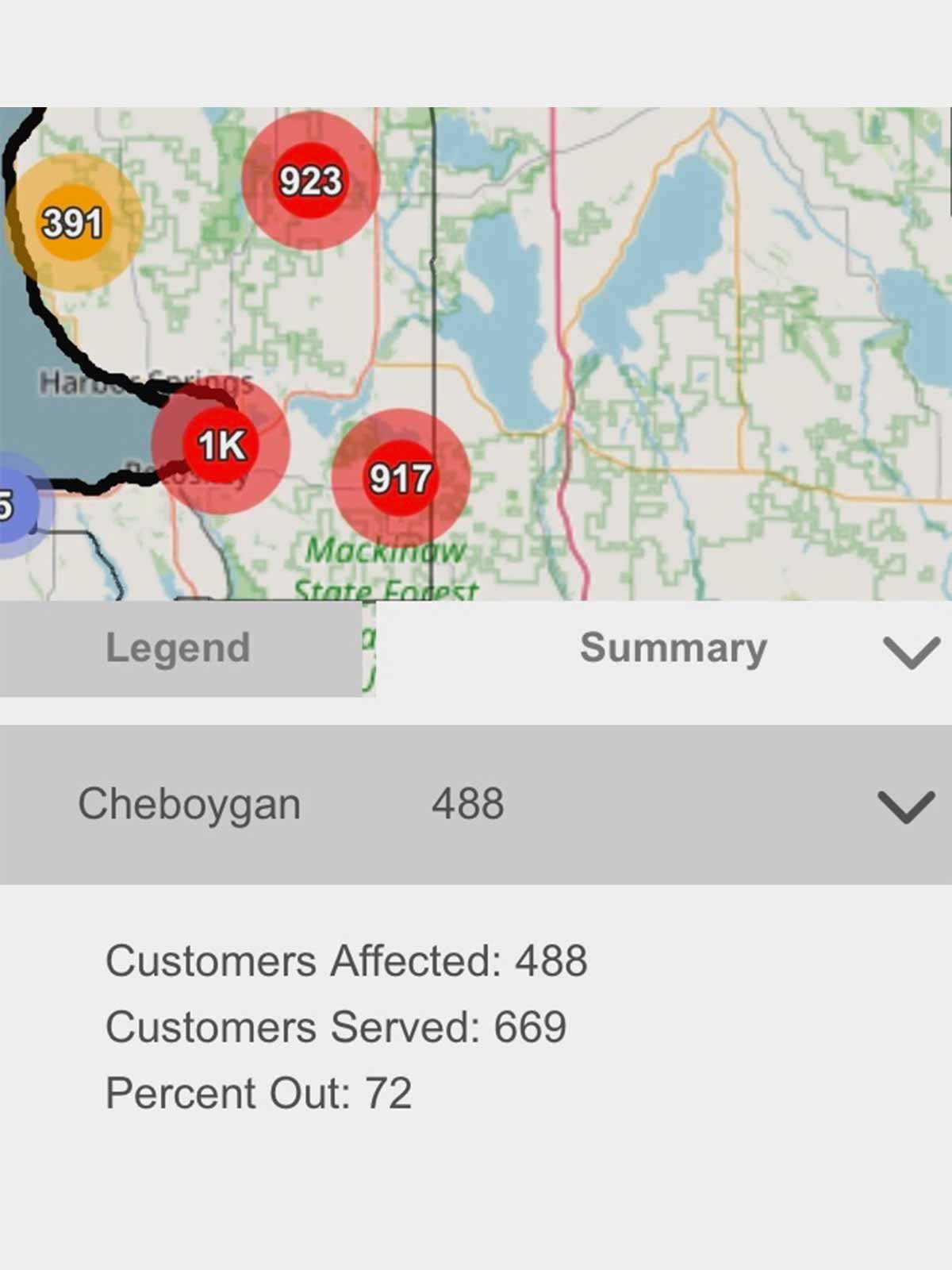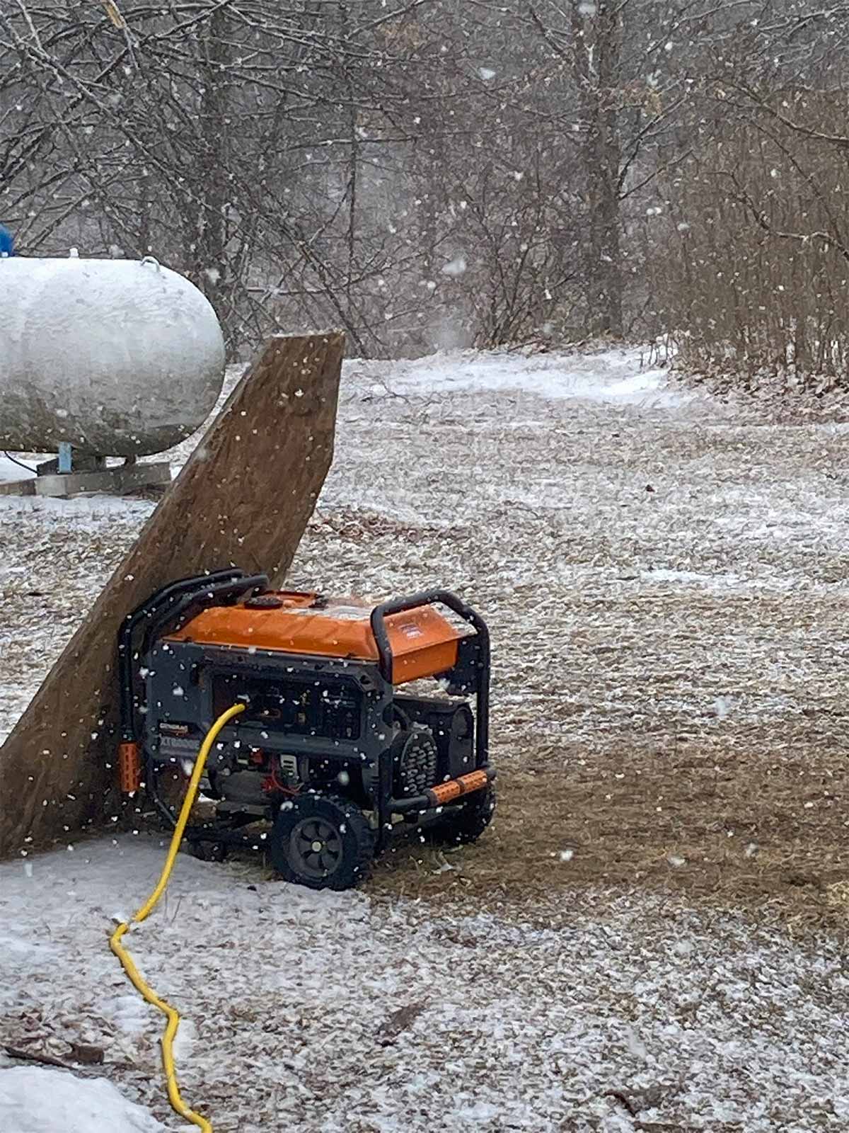 Day 11– Winter is back again- snow showers all day. At least the generator is still kicking! Our power company is Great Lakes Energy. On Day 11, looking at the outage in our area, it shows 72% of their customers in our county are still without power. No sign of anyone from the power company today.