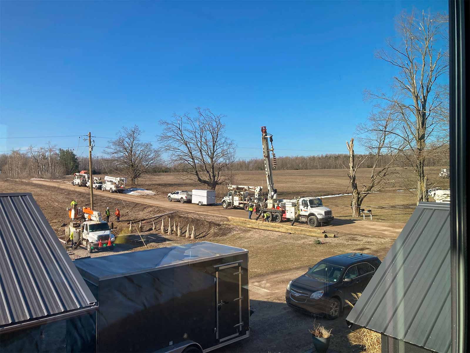 We had to leave to get to band practice at church. When we returned around 8 PM, they were packing up for the day. They didn't finish, but came close. They attached the service lines to our house!