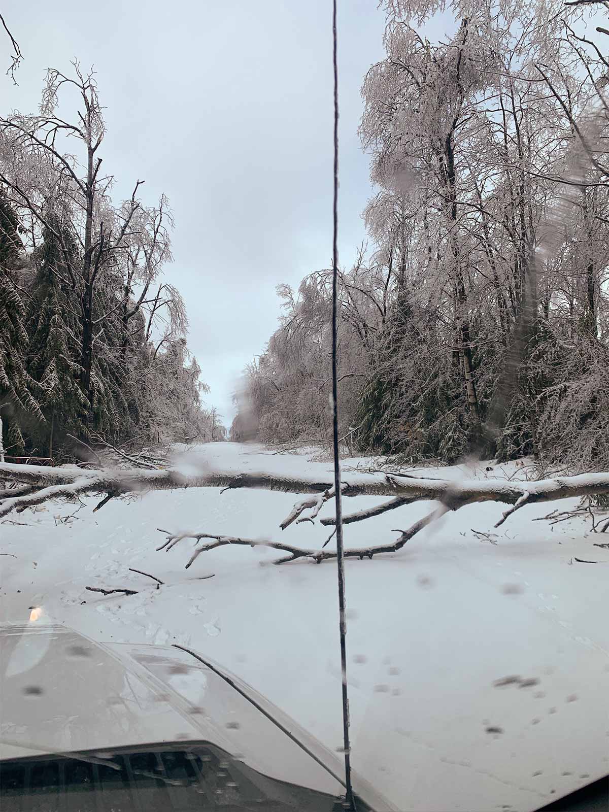 By Tuesday, we had one way out from our house, but the trees were still weighed down with ice and continued to break. By the end of the day on Tuesday, four utility poles in a row were down on our street. And we heard it was like that all over northern Michigan.